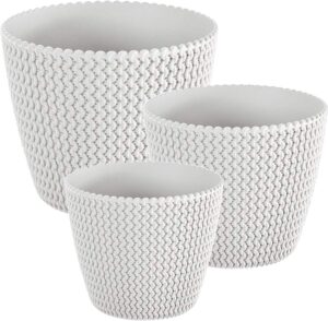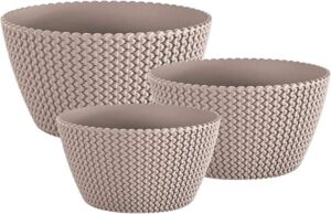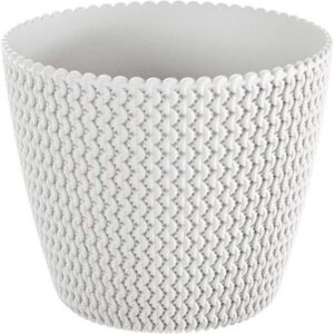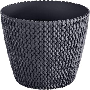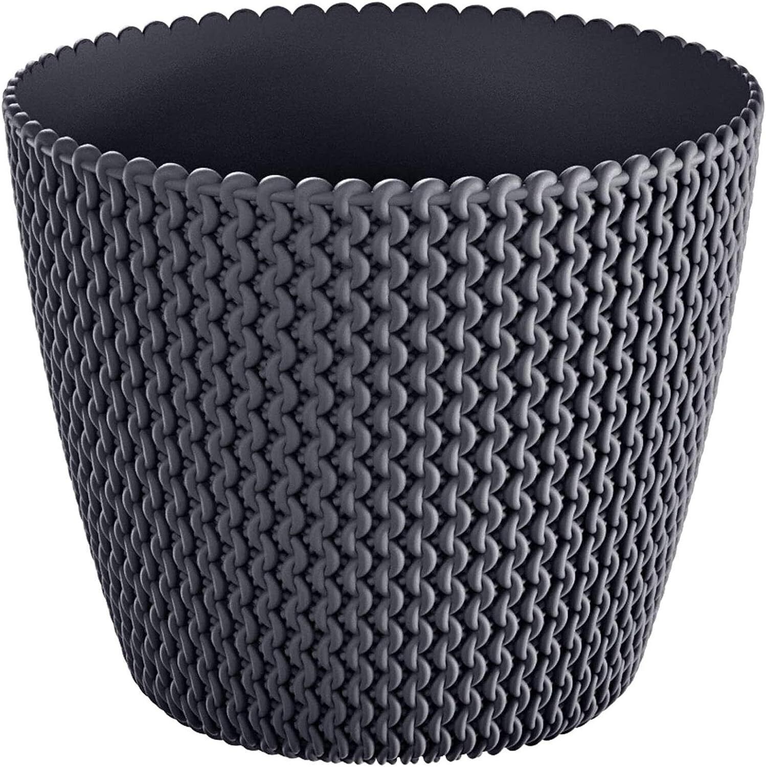 Stylish round plant pots for indoor or outdoor use, with an openwork knit-look texture that catches the light. Made from UV-resistant polypropylene for a lightweight, durable pot that’s easy to wipe clean.