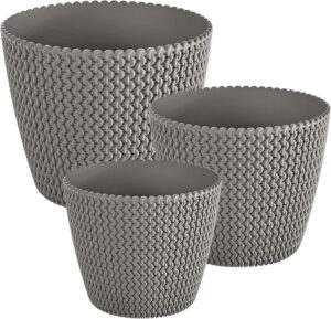 These Splofy-style plant pots are designed to give your plants a smart, modern finish indoors or out, while keeping things practical for everyday use. The openwork knit-look surface adds texture and depth, helping your display stand out on shelves, windowsills, patios or balconies.
