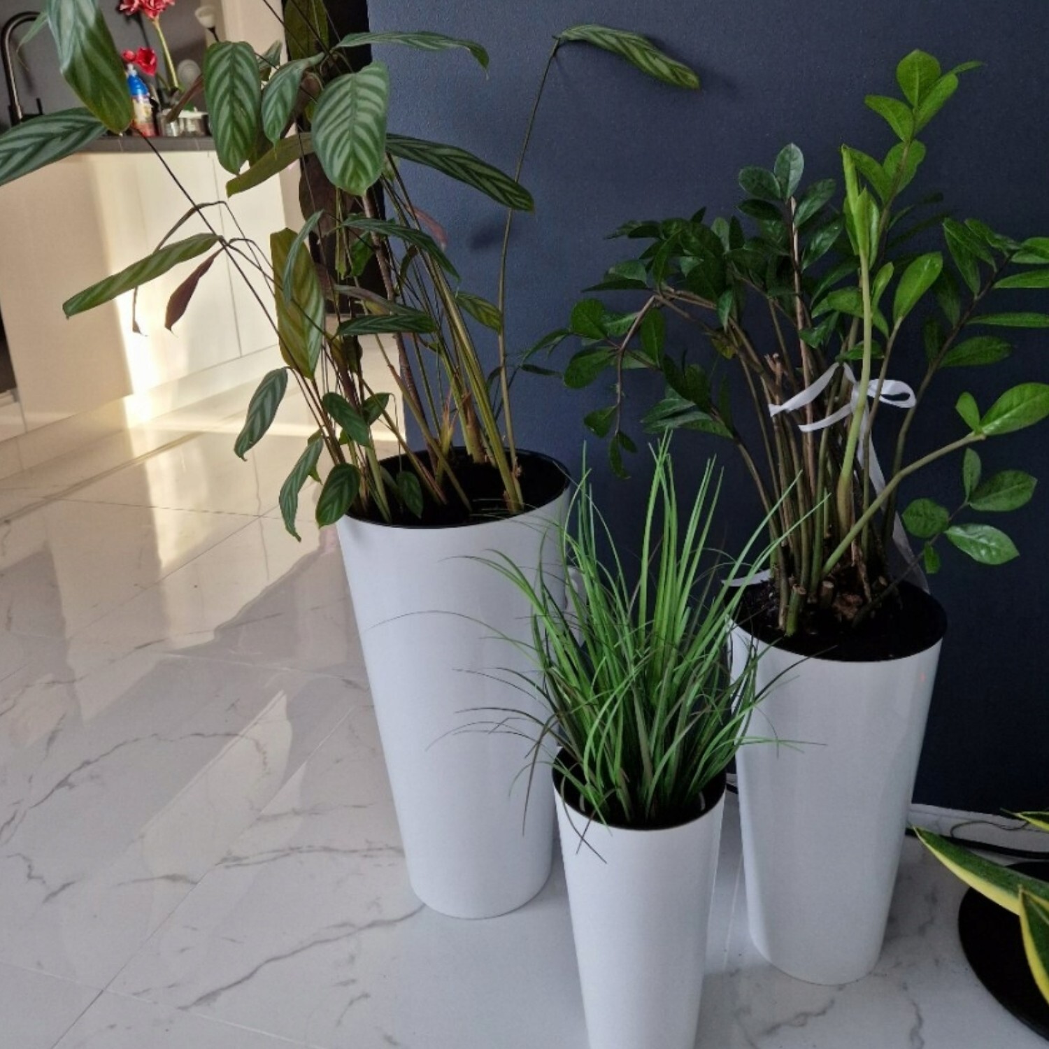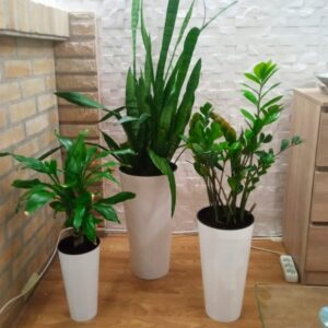 Made from lightweight plastic with a high-gloss coating, this planter is easy to handle compared with heavier ceramic or metal alternatives. The smooth surface is simple to wipe clean, making it a practical choice for everyday plant care.
