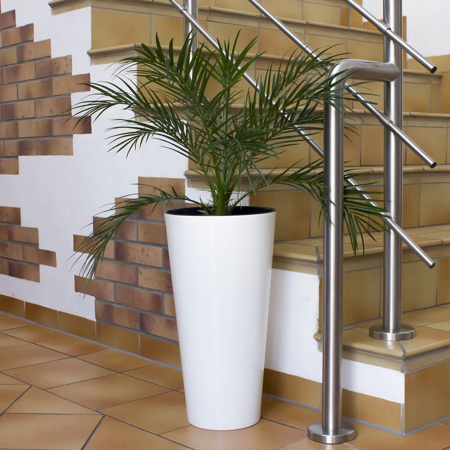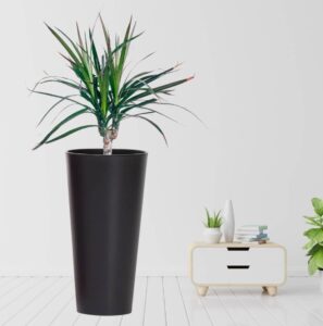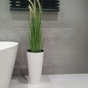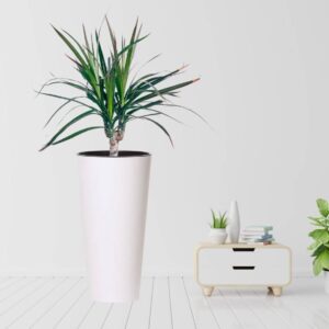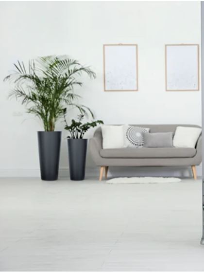 A modern tall planter designed for indoor rooms, balconies and outdoor spaces. The glossy finish adds a smart look while the lightweight construction makes it easy to move and re-style.