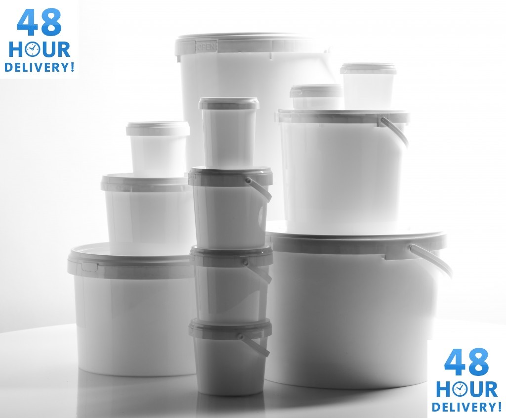 Food-grade plastic storage buckets supplied with tamper-evident snap-on lids for secure, airtight storage. Ideal for kitchens, catering, crafts and light trade use, with sizes and multipacks available to suit your needs.