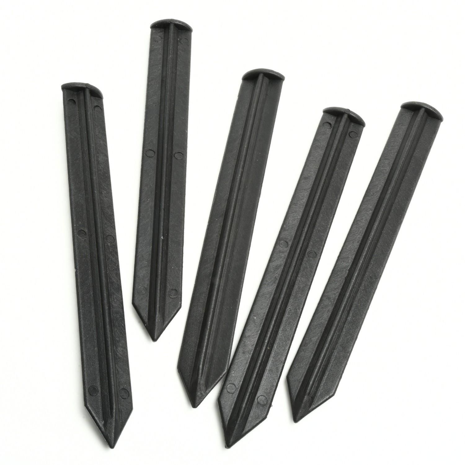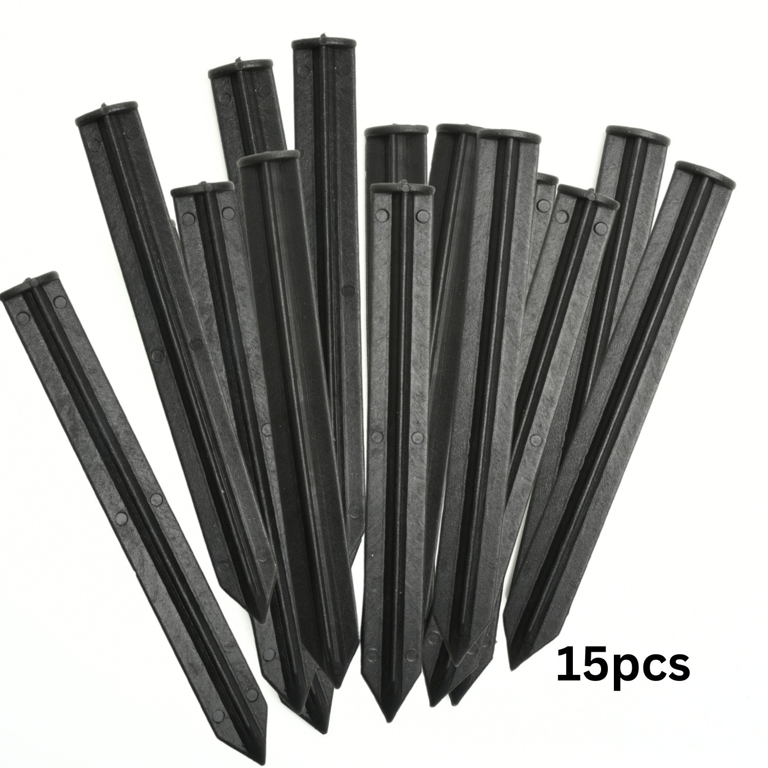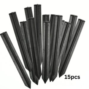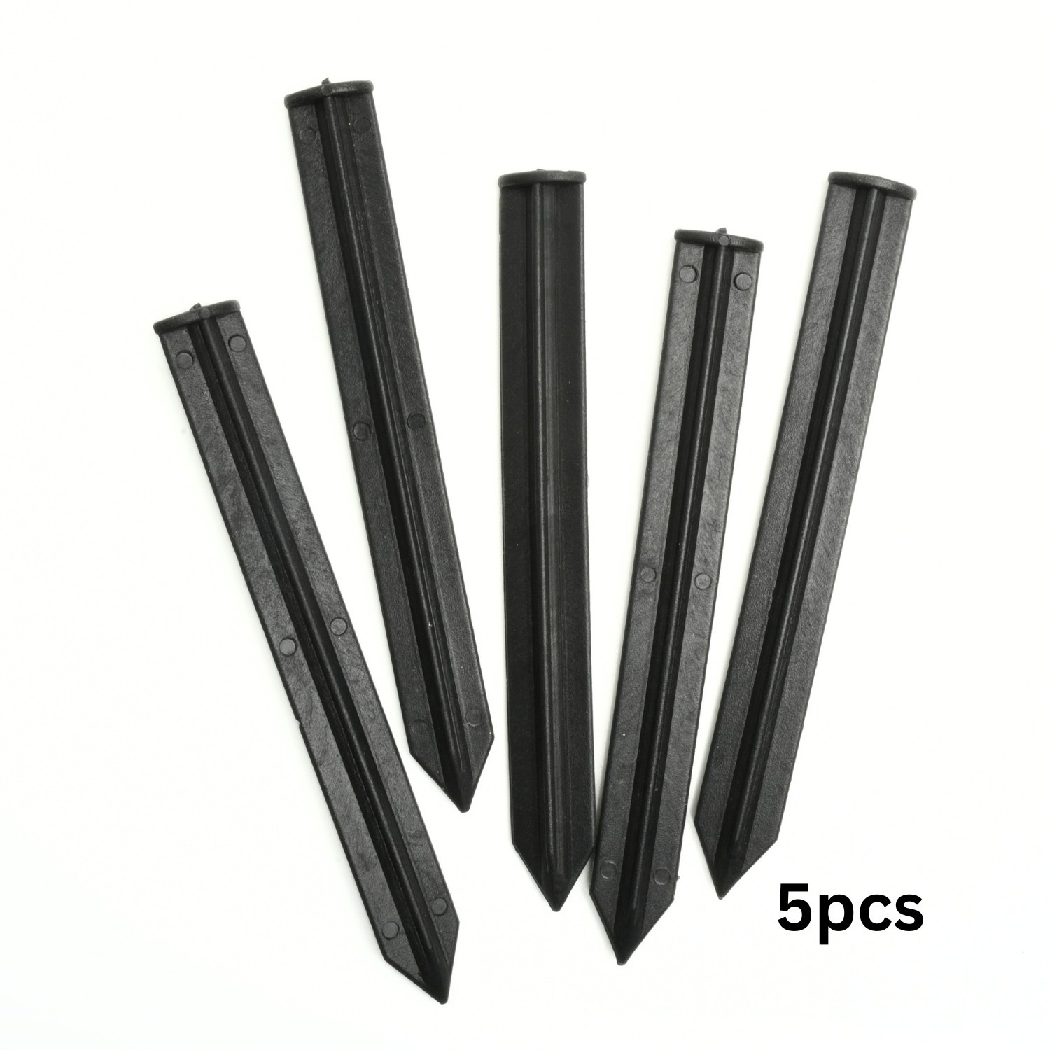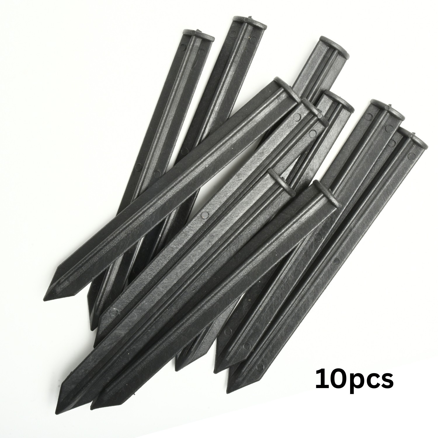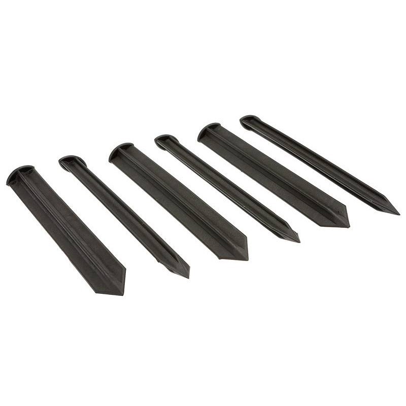 Made from tough black plastic with a pointed end, each peg is shaped for straightforward insertion and stable anchoring. The weather-resistant material won’t rust, making them suitable for repeated outdoor use.