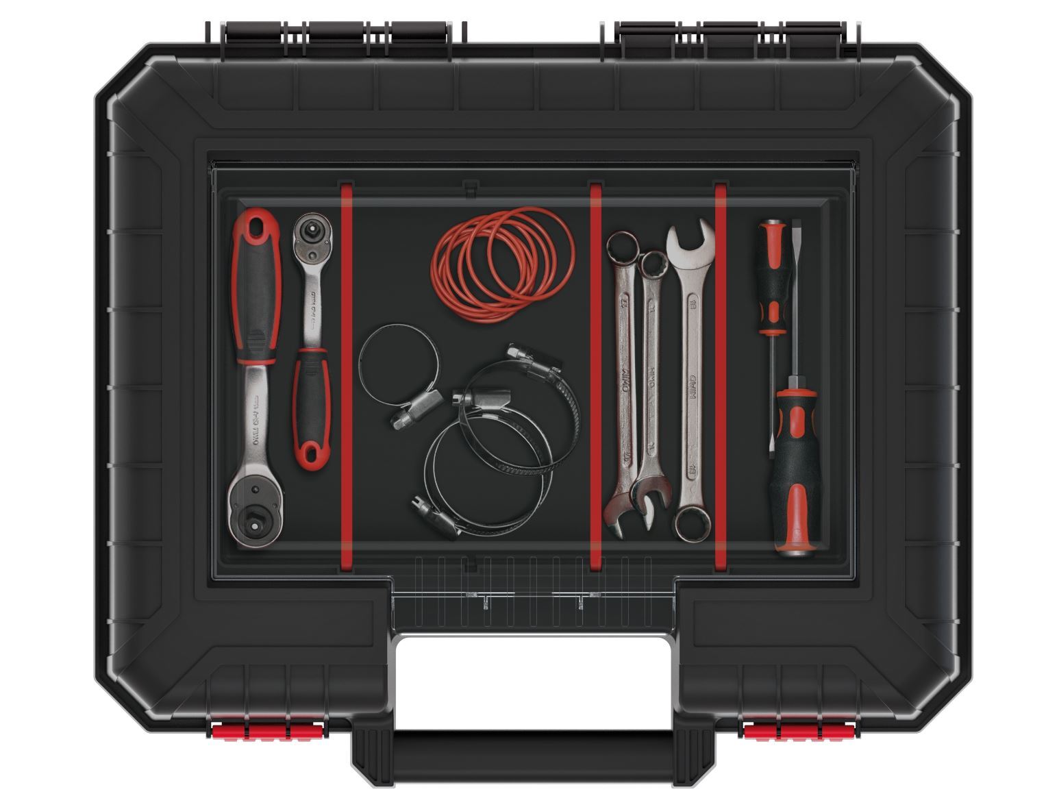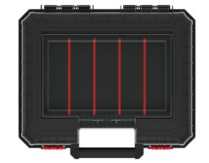 Made from a high-strength polymer blend with durable fasteners and an ergonomic carry handle, these cases are built for regular use in the workshop, garage or on site. Depending on the model selected, you may also get protective foam lining, internal securing straps, and a dedicated organiser section for small parts.