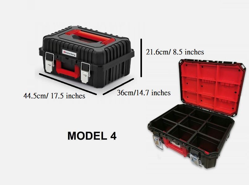 Choose the correct model for your tool and storage needs, whether you want a compact case for a single power tool or a larger format for additional kit. Some versions include removable dividers and transparent lids for quick identification of contents.