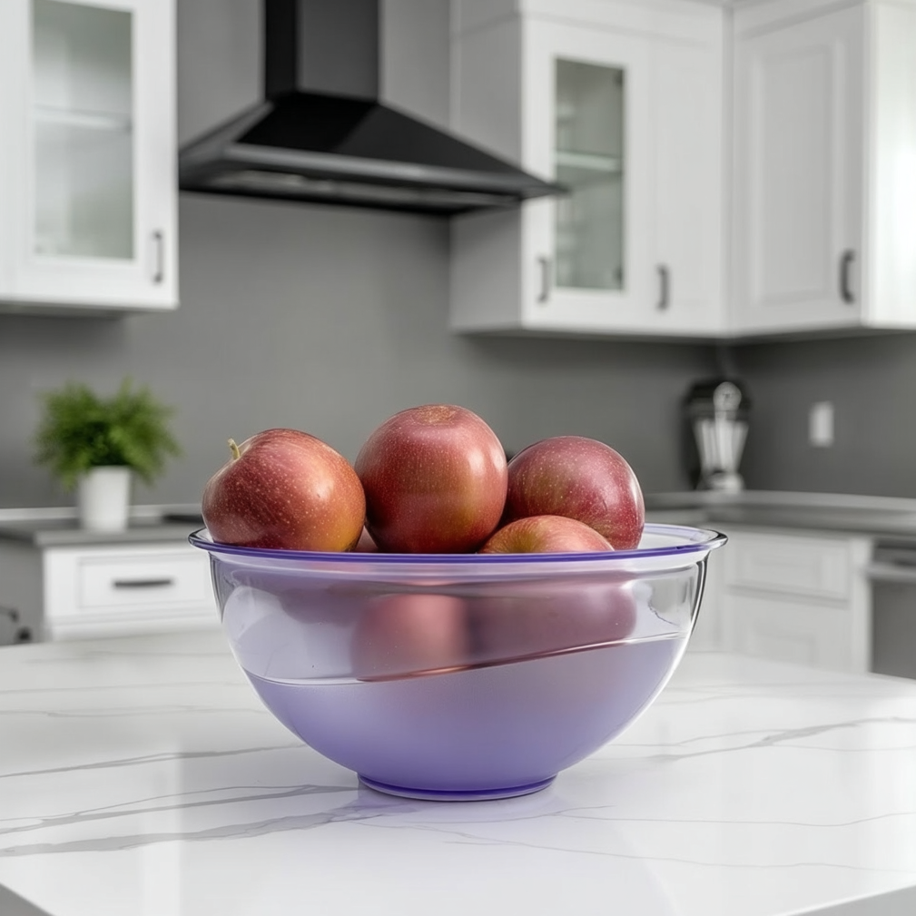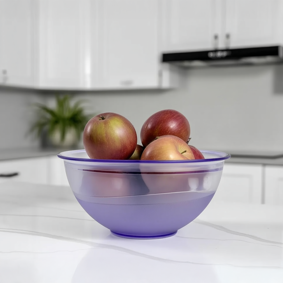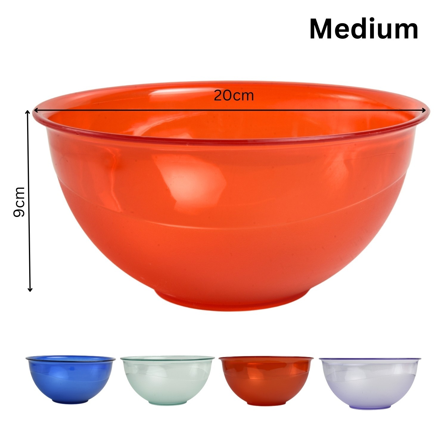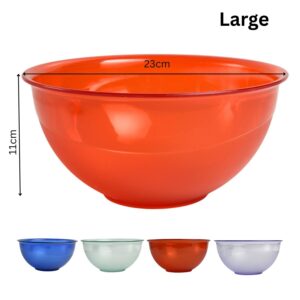 Durable food-safe plastic serving bowl for salads, fruit and everyday prep. Lightweight yet sturdy with a glossy transparent finish, ideal for home dining, picnics and parties. Choose your preferred colour, size and pack quantity.