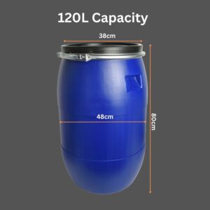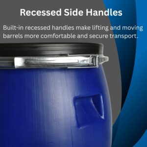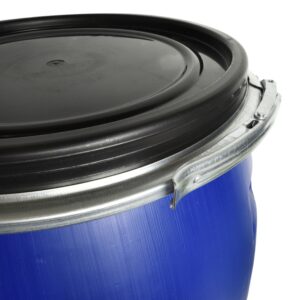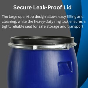 Food-grade open top barrel for hygienic storage of liquids and dry goods. HDPE body with a removable lid and lever-lock ring for a secure, airtight seal. Ideal for home brew, catering, agriculture and general workshop storage.