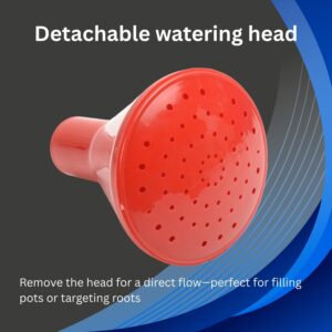 Made from durable, lightweight plastic, it’s easy to handle even when filled. The detachable rose head lets you choose between a soft, rain-like sprinkle for delicate flowers and seedlings, or a more direct flow for quicker watering and targeting the root zone.