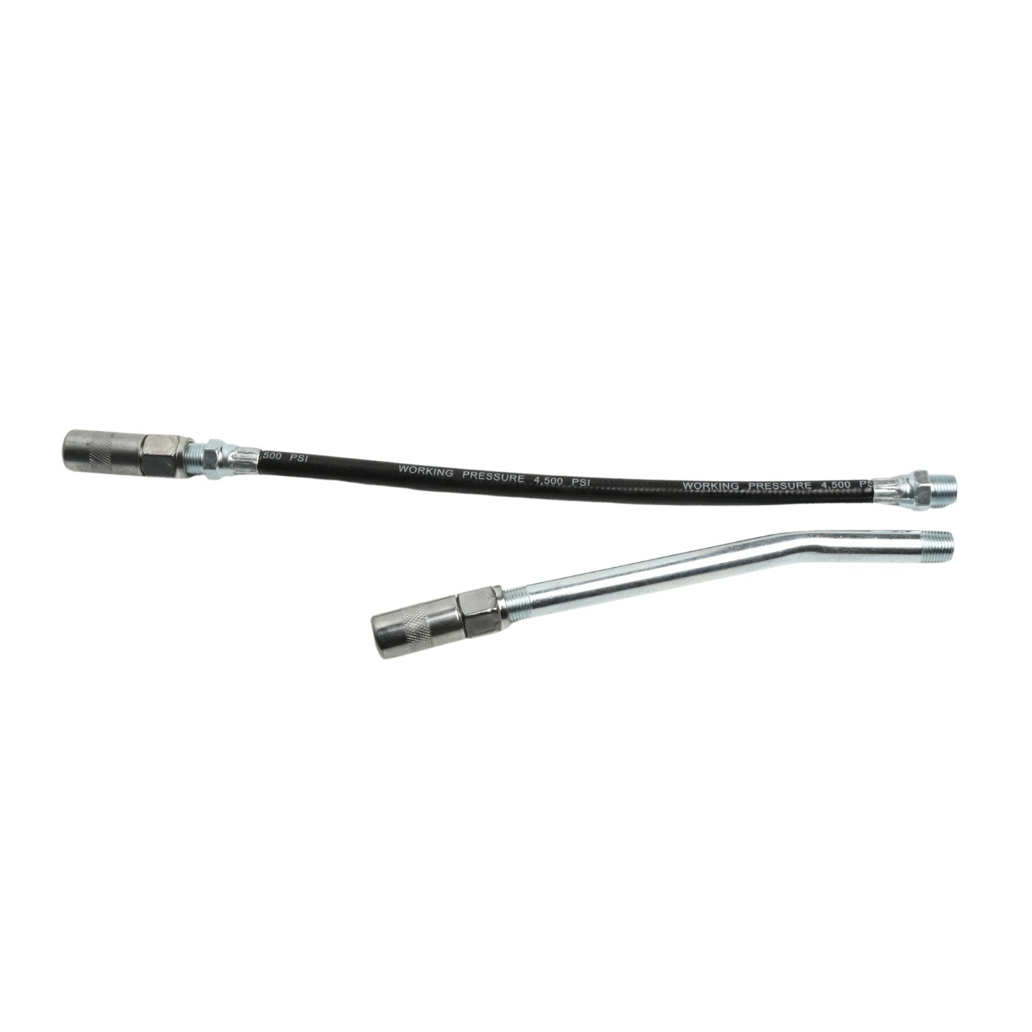 The included flexible hose helps you reach grease nipples in tight spaces, while the rigid lubricating tip is useful for more direct, accurate application. Together they make it easier to grease hard-to-access components without fighting the tool position.