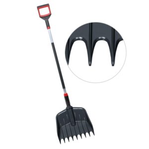 Designed with specially profiled teeth, the head helps rake material in and keep it together as you lift. The tool uses a durable plastic head with an aluminium shaft, plus a rubberised grip area to improve comfort during longer jobs.