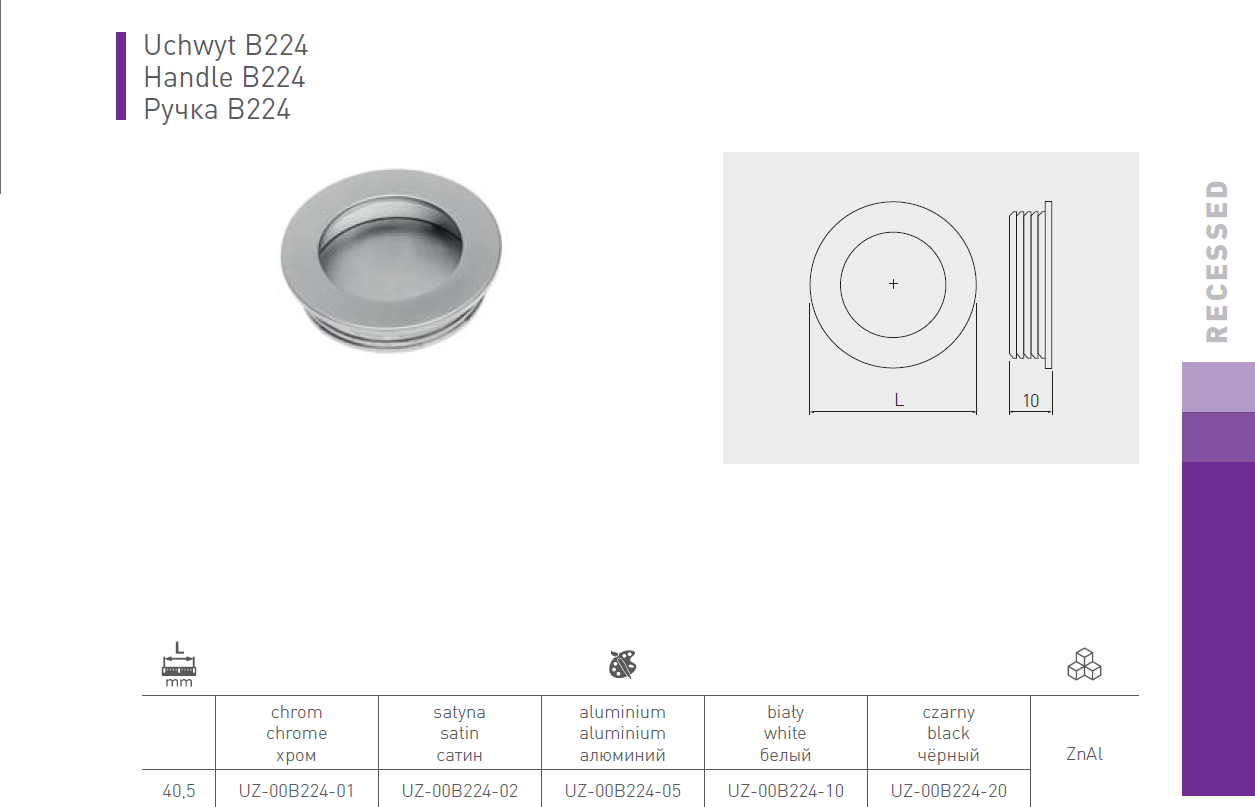 Made from durable Zamak (a zinc-aluminium alloy), it’s built for frequent use in busy areas of the home or workplace. The round, flush-fit design helps reduce snagging and knocks, making it a practical choice where space is tight.
