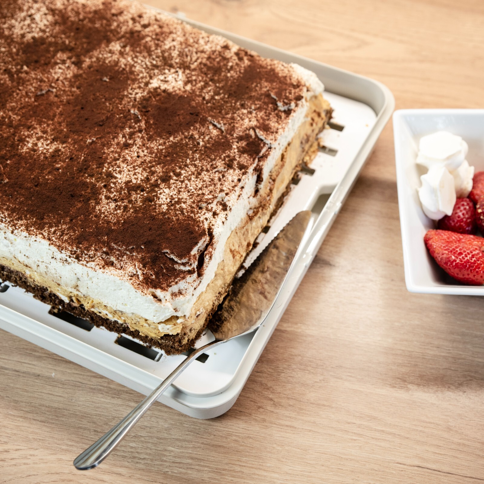 The included cooling inserts are ideal for warm-weather journeys, helping to keep desserts cooler during travel to picnics, parties and family gatherings. The ventilated insert/grid also supports airflow to reduce condensation and protect delicate toppings.