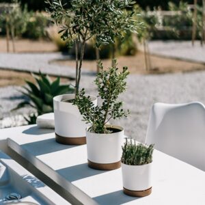 Round Plant Pot with Saucer Matte Two Tone