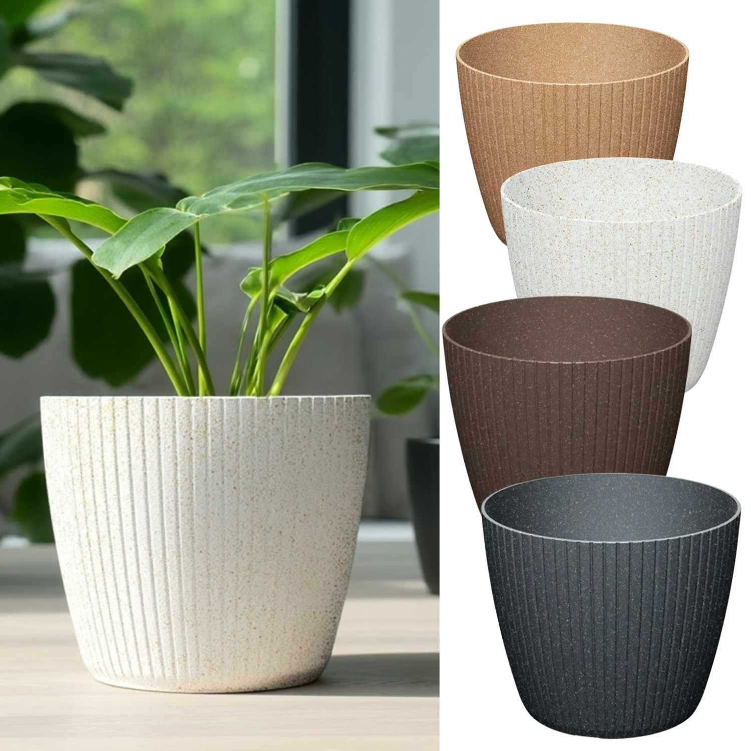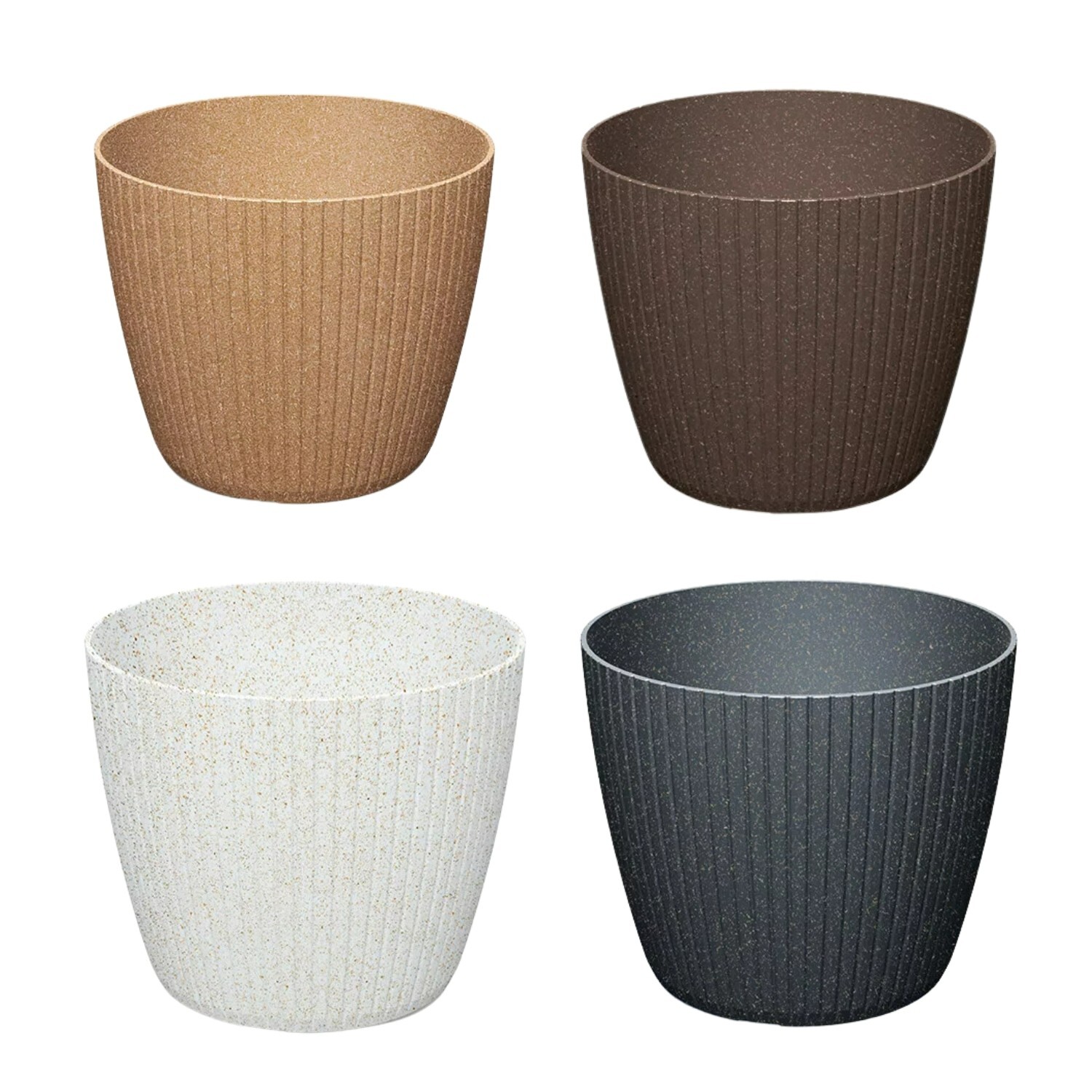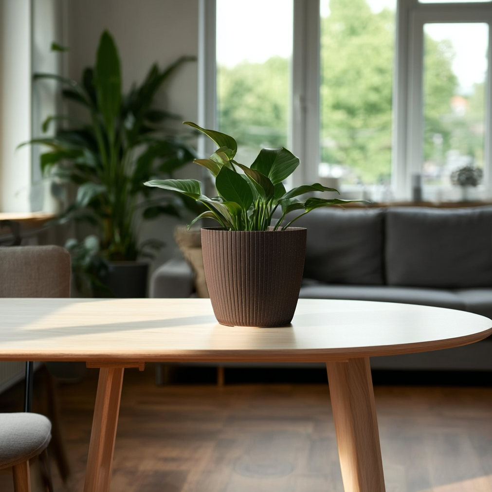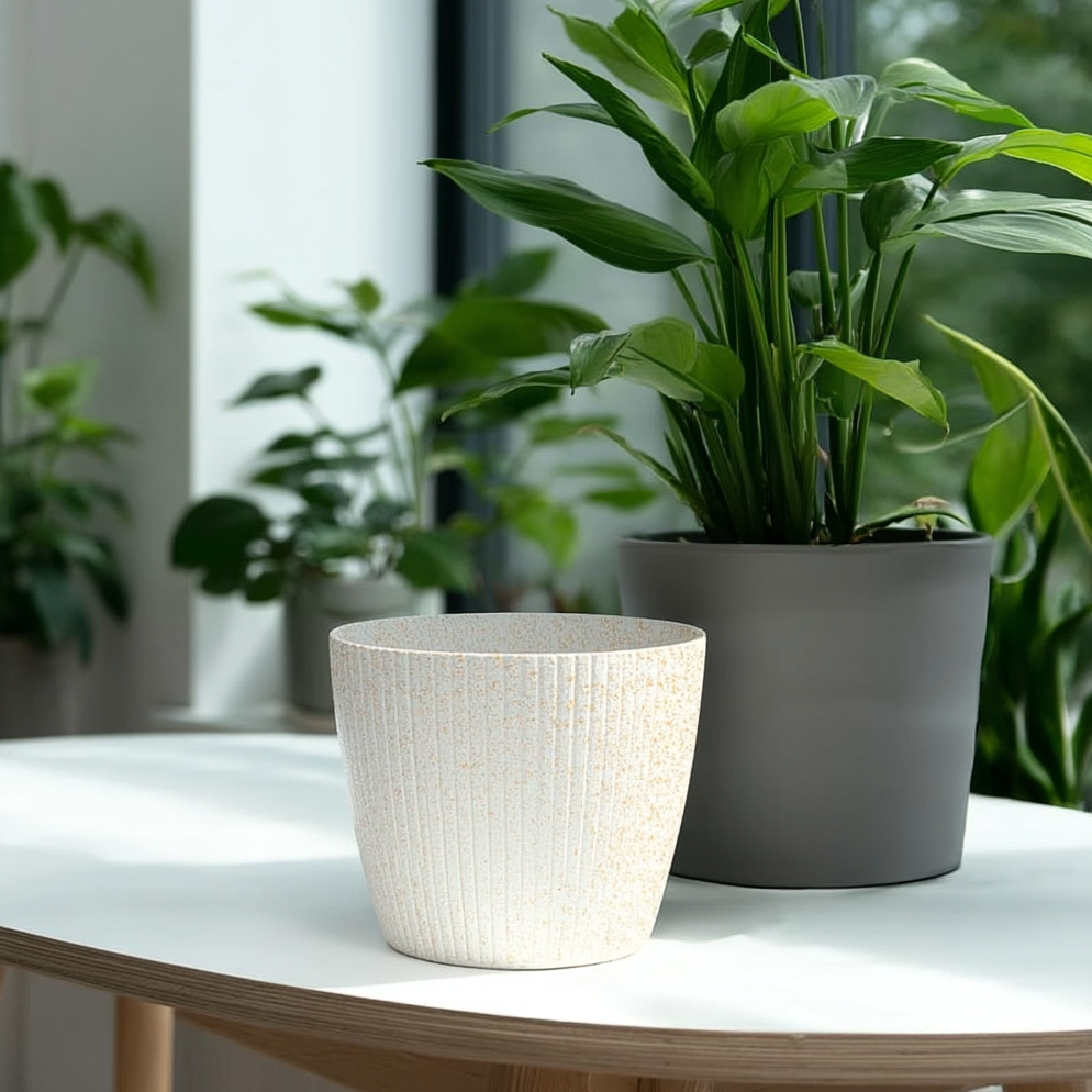 A stylish round planter for displaying houseplants with a modern vertical-groove finish. Made using recycled and wood-blend plastic for a lighter, durable pot that’s easy to wipe clean. Choose your size and colour to suit your space.