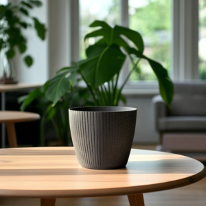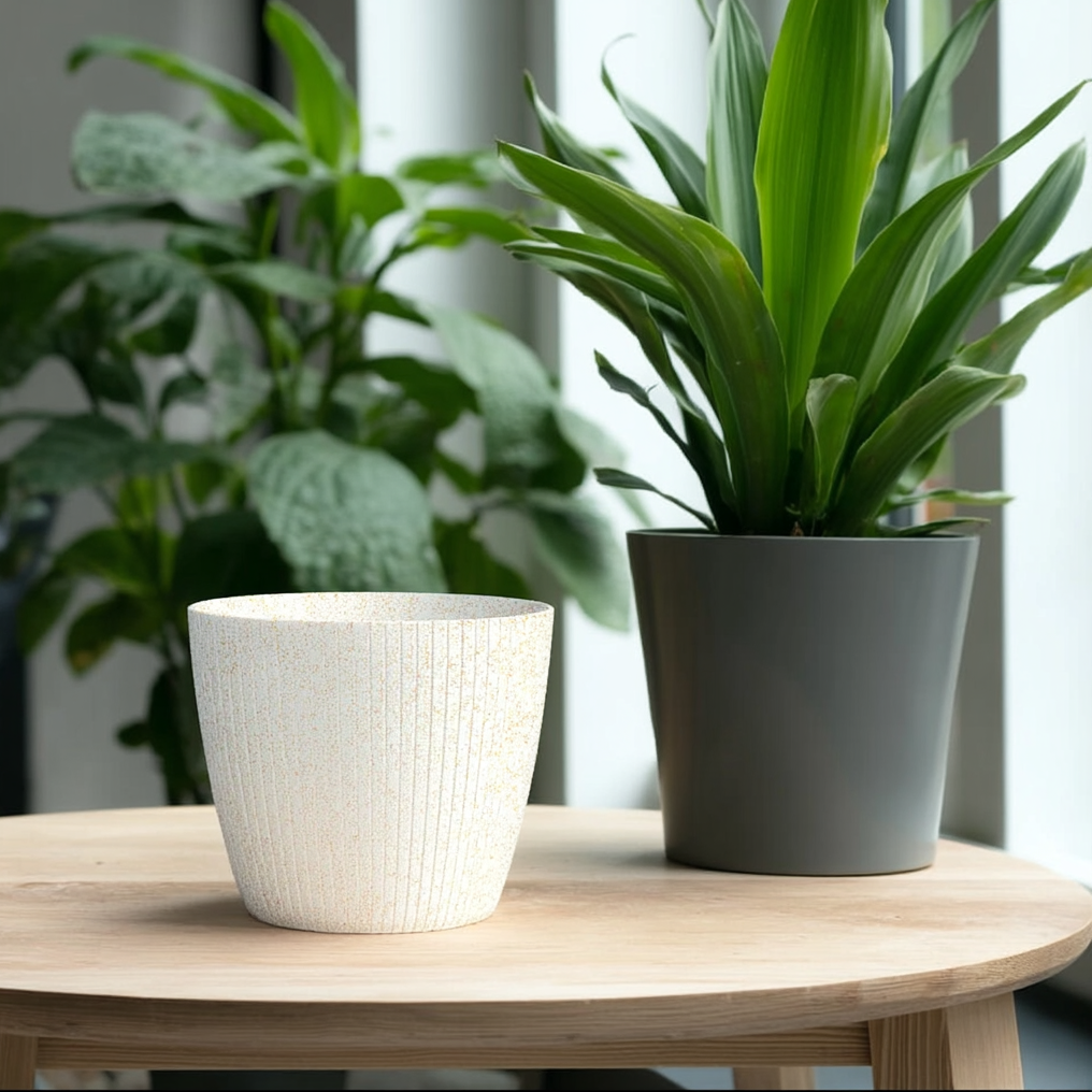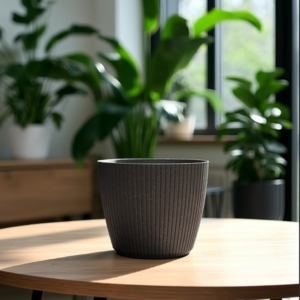 Round Planter with Vertical Grooves Recycled Plastic