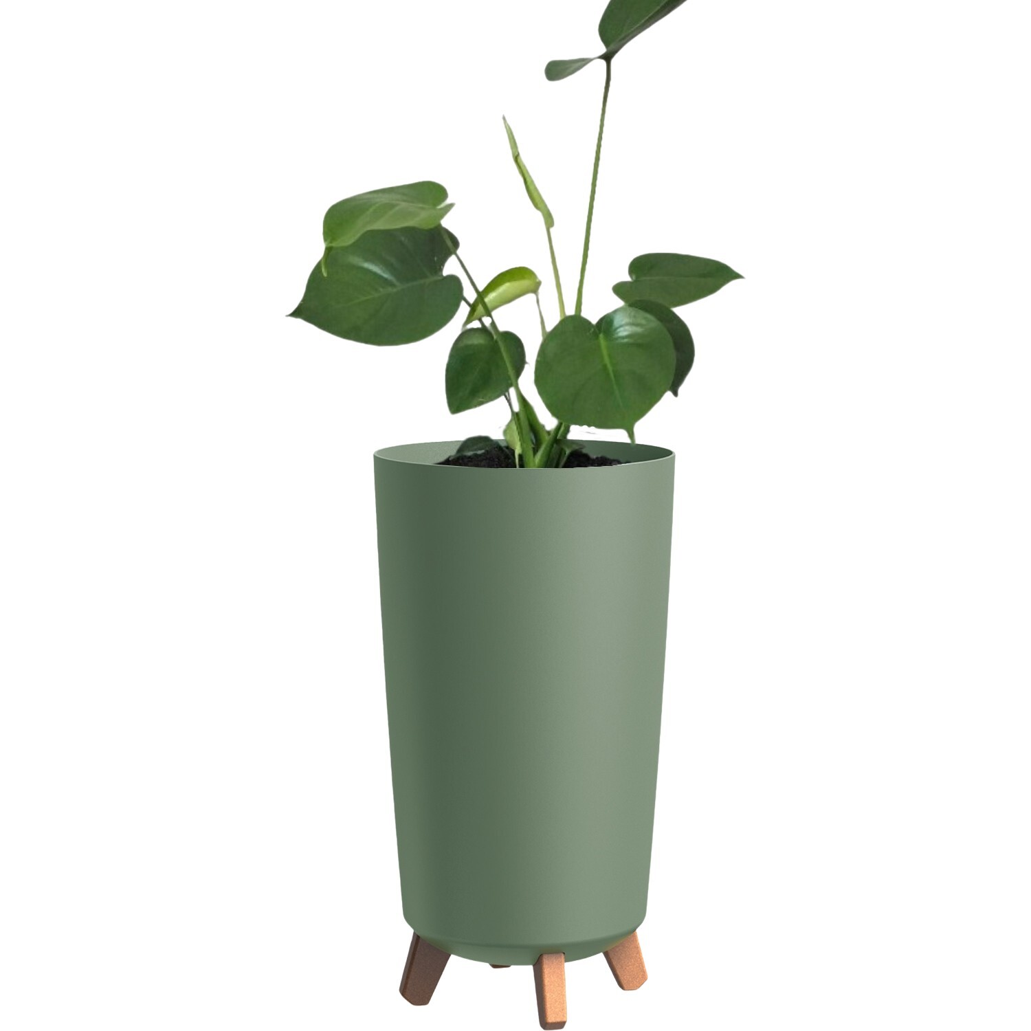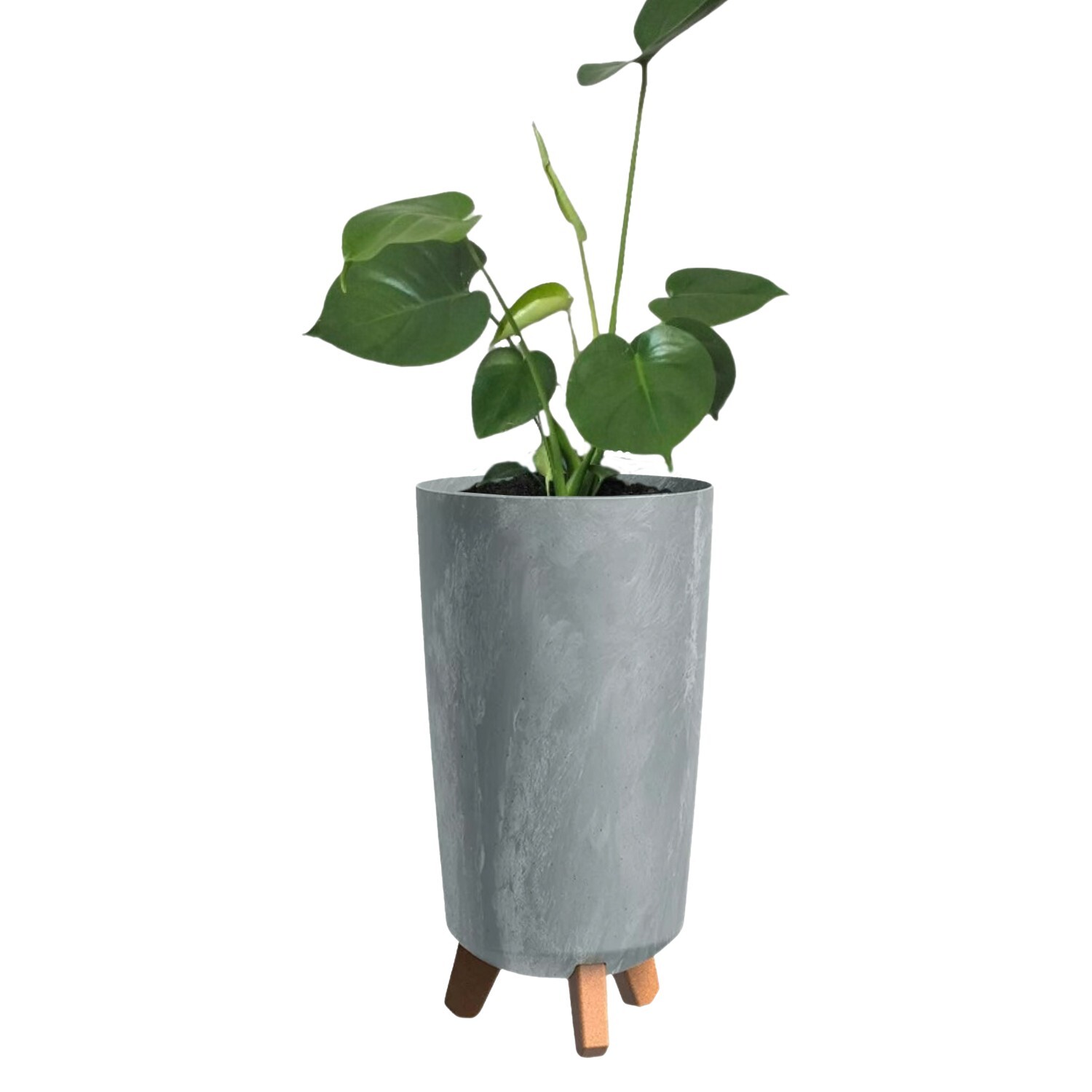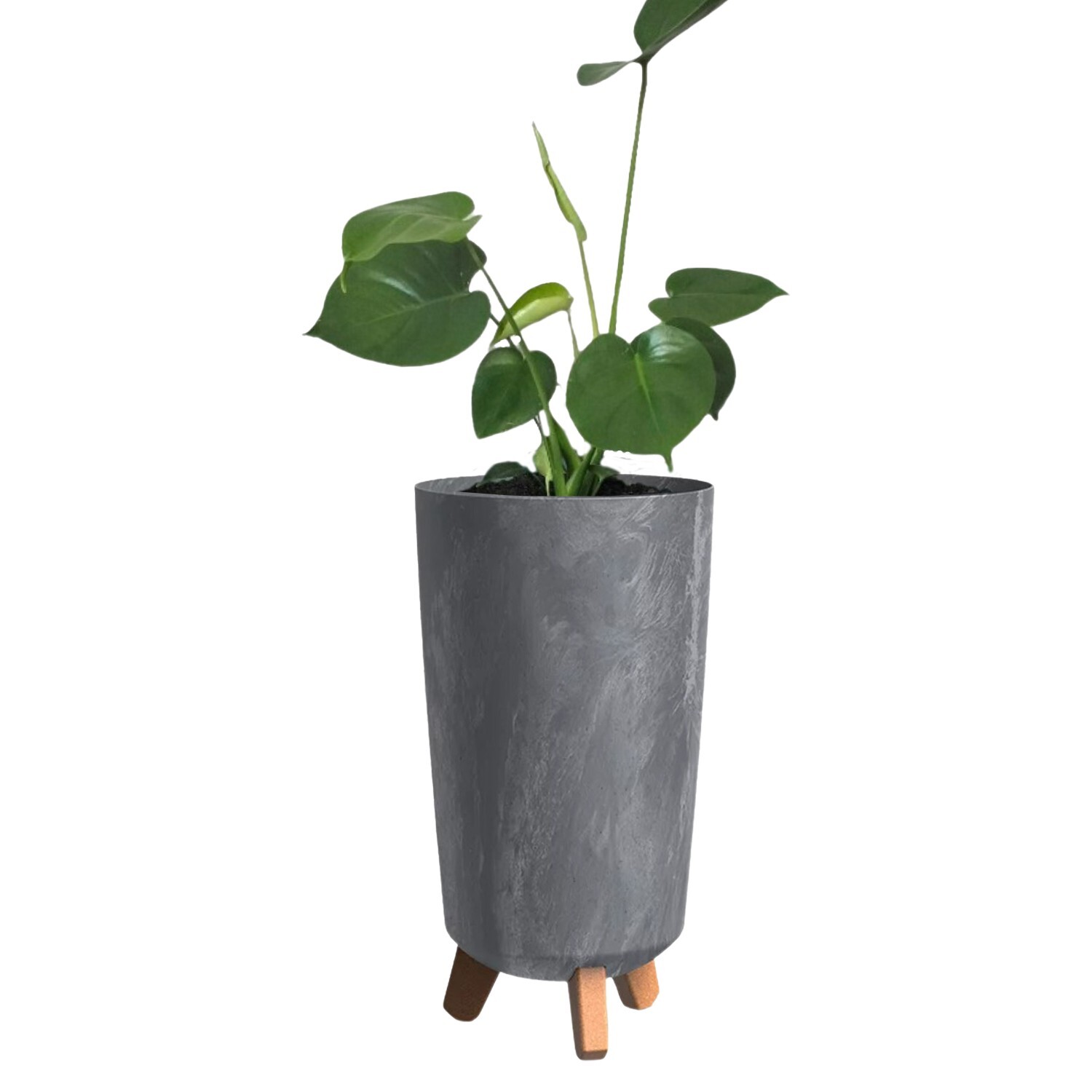 A tall round planter with removable legs, ideal for displaying plants indoors or outdoors. The raised design helps show off foliage while keeping the pot stable on patios, balconies and in the home.