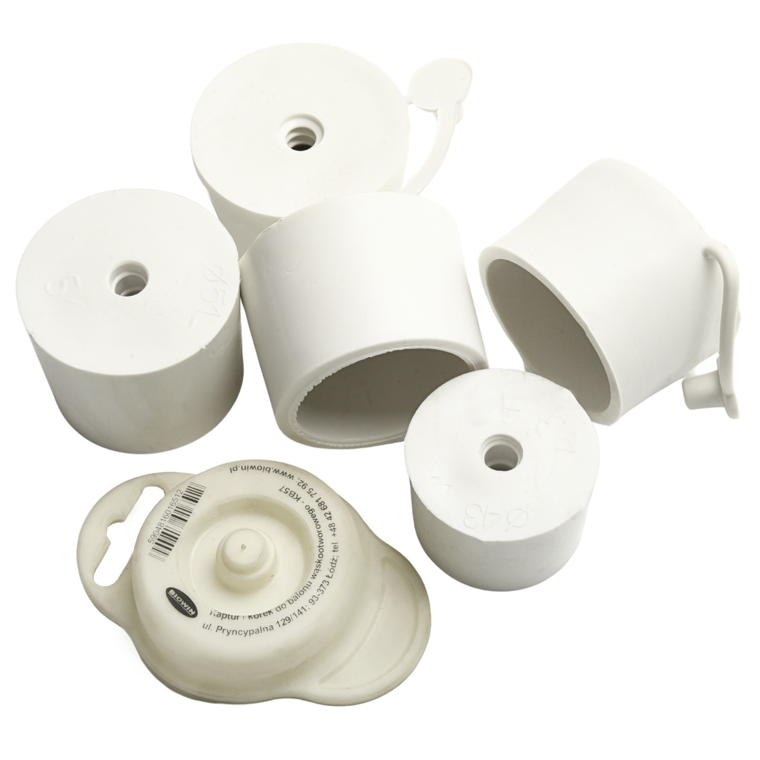 Create a reliable seal on demijohns and fermentation vessels with these reusable white rubber bungs and caps. Choose the size and pack size you need, with options for bungs and cap styles to suit home brewing and winemaking.
