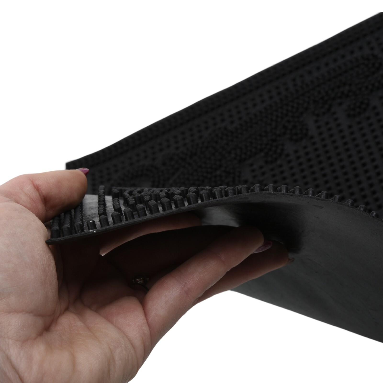 Made from robust rubber with a textured surface, it helps scrape mud and debris from shoes as you step inside. The slip-resistant backing grips the floor to minimise movement, making it a practical choice for busy areas.