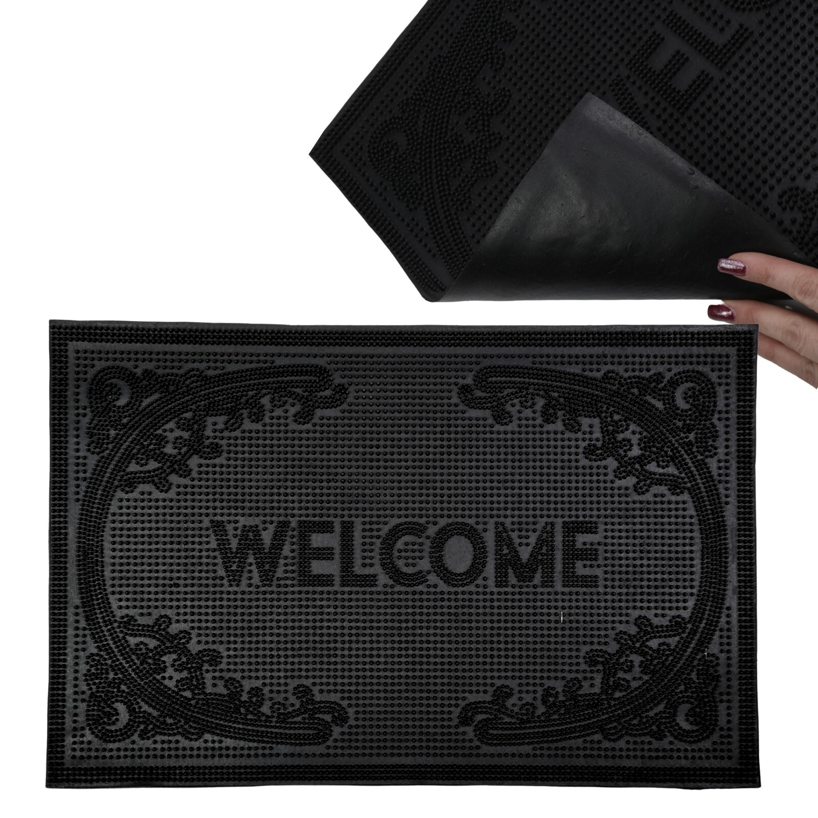 Keep your entrances tidy, safer underfoot and more welcoming with this durable rubber door mat. Designed for everyday use, it helps reduce the amount of dirt and moisture tracked indoors while staying stable on the floor.