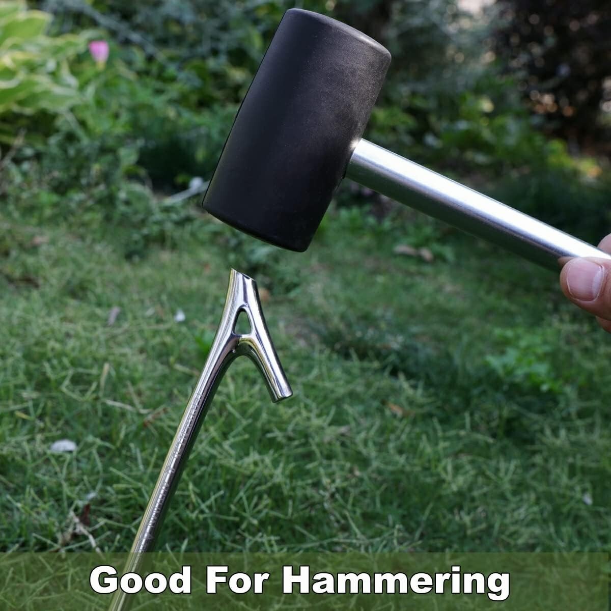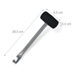 The solid rubber head delivers controlled, non-marking strikes, while the sturdy metal shaft provides strength and stability. The built-in hook makes it easier to lever out stubborn pegs without bending them or having to dig around the base.