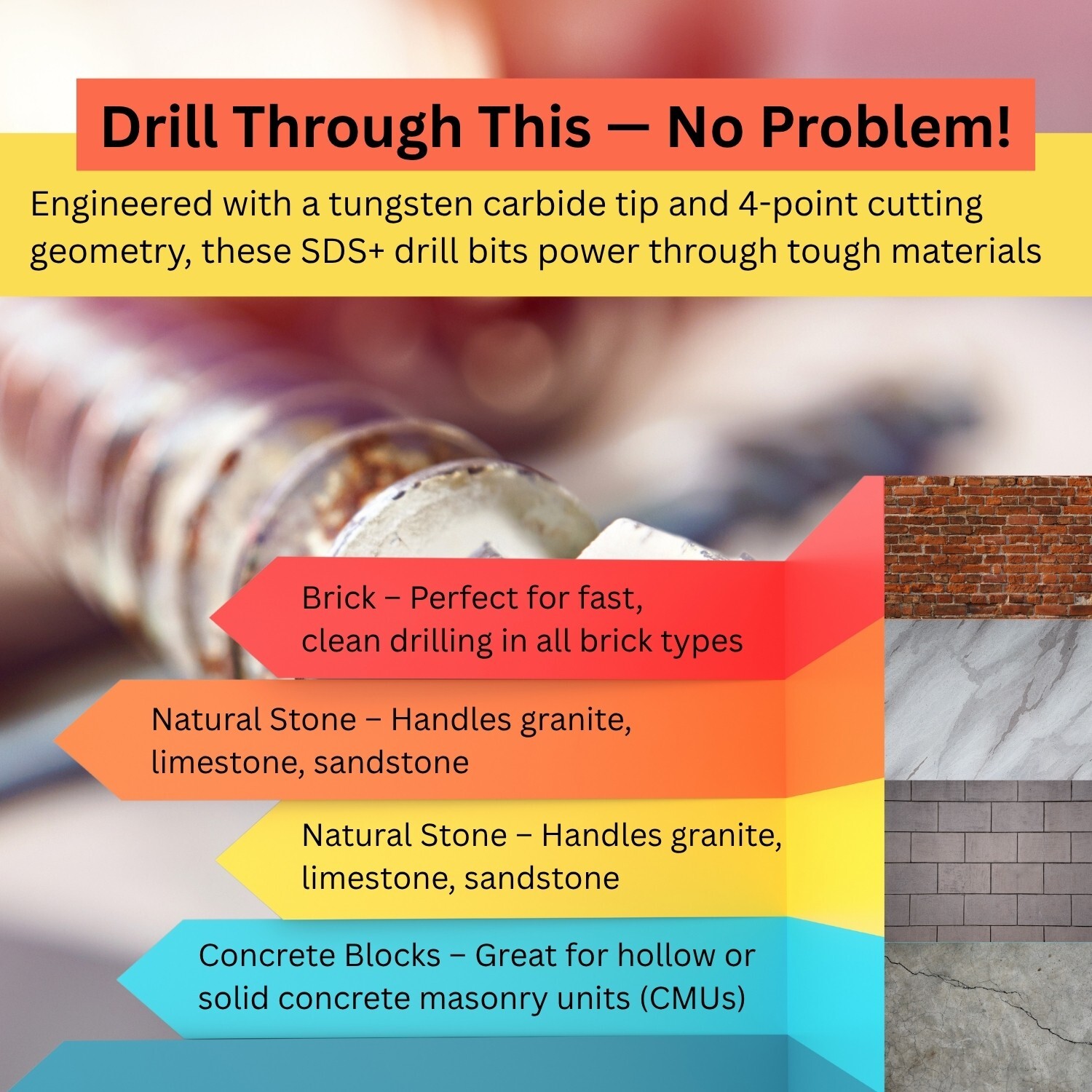 SDS Plus Masonry Drill Bit for Concrete & Brick