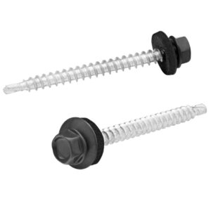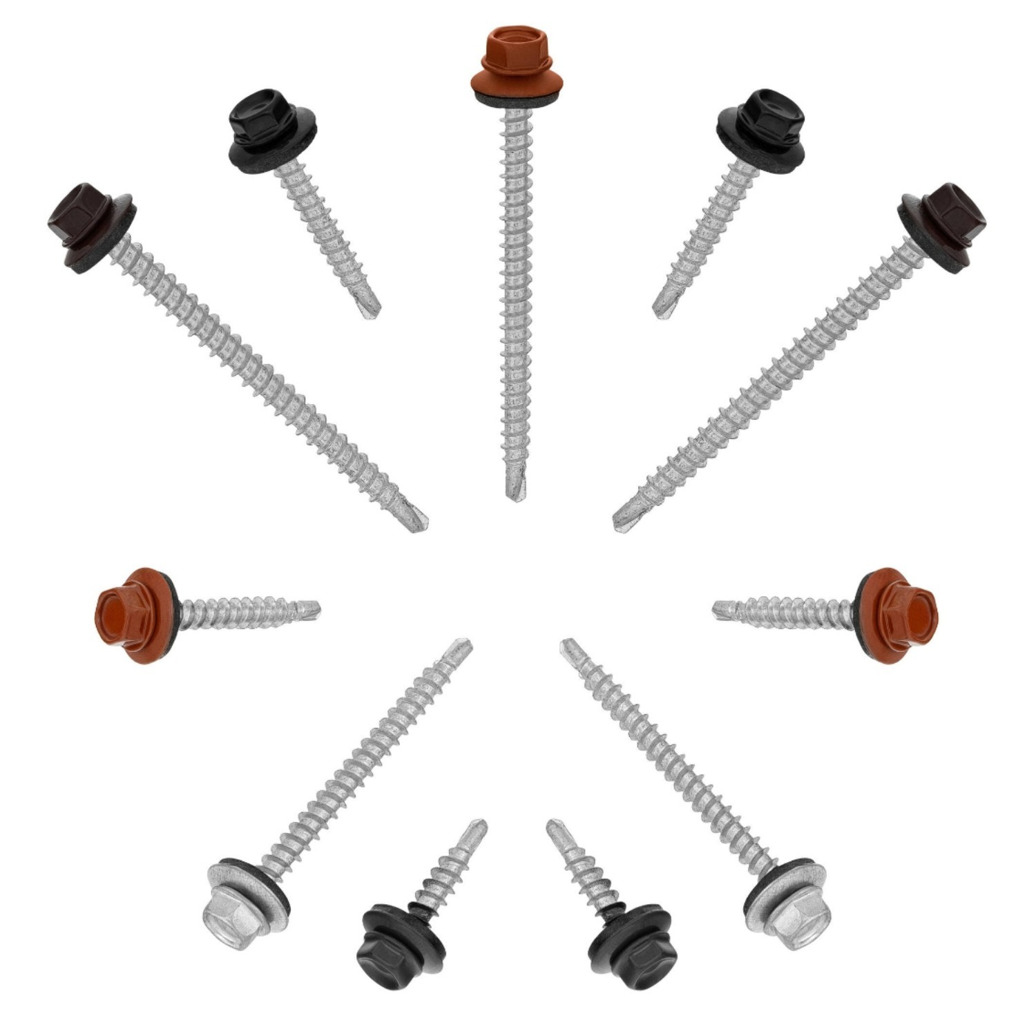 Self-drilling roofing screws designed for fixing profiled metal sheets to wooden substructures. The EPDM sealing washer helps create a secure, watertight joint, while the hex head makes installation quick and reliable outdoors.