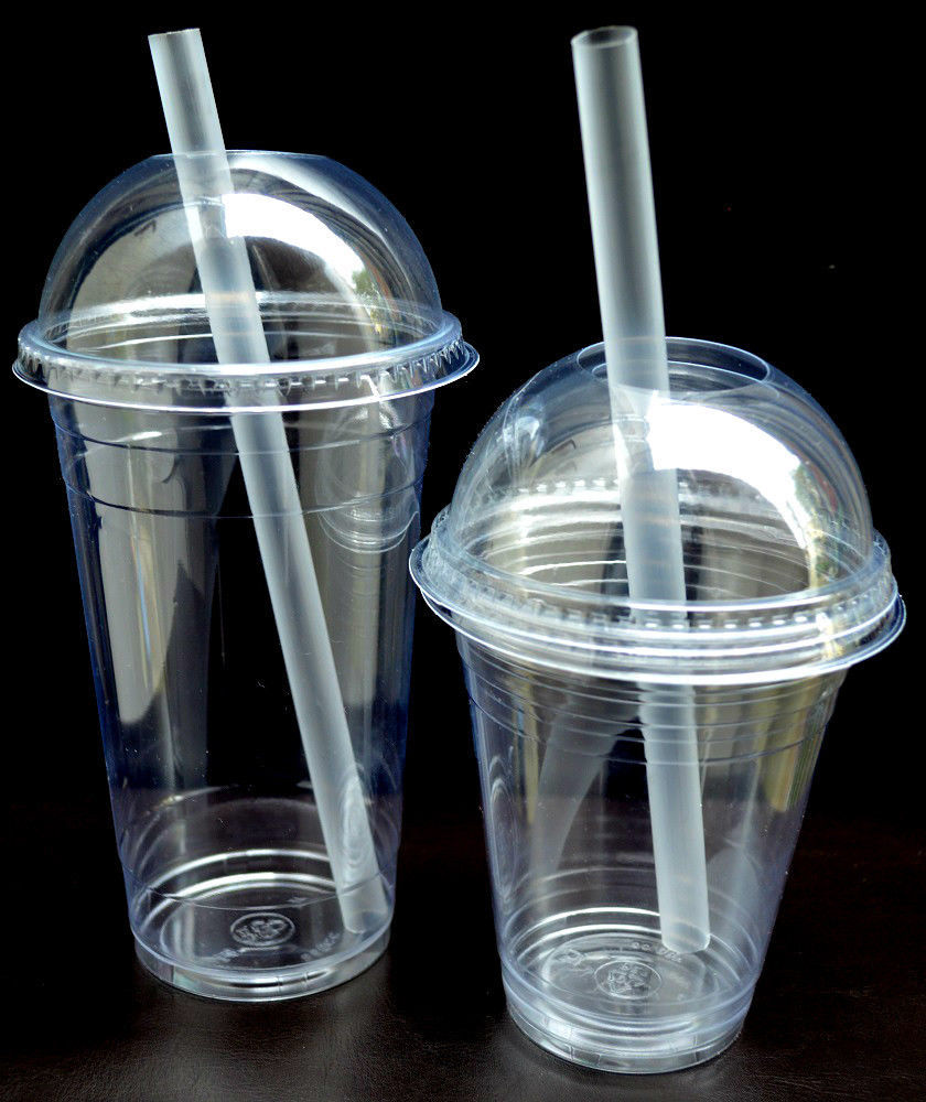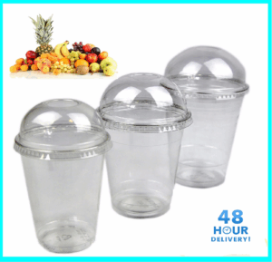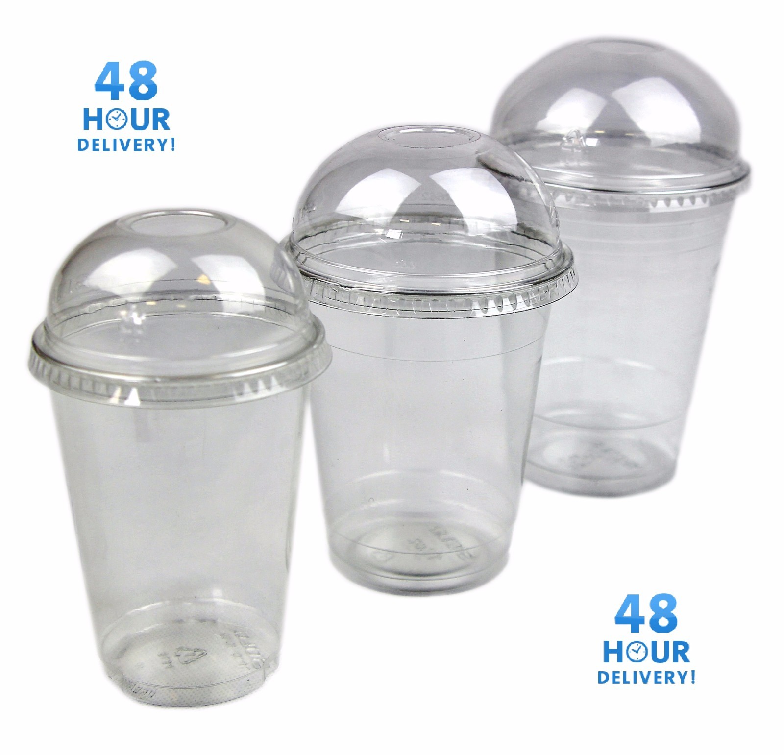 Clear PET smoothie and milkshake cups for serving cold drinks at home, events or catering. Choose your cup size, pack quantity and lid option to suit your needs, including domed lids for thicker drinks and straw-slot lids for easy sipping.