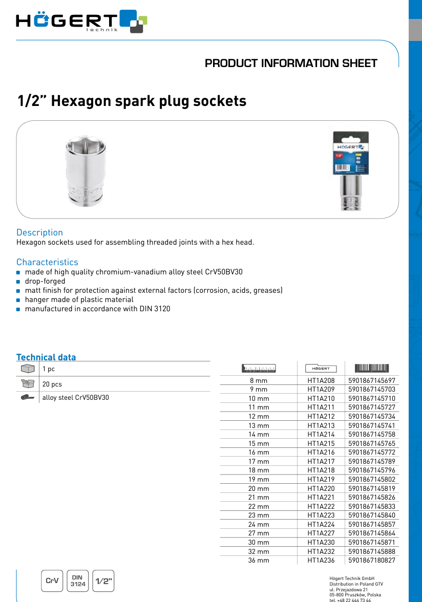 | Size | 8mm, 9mm, 10mm, 11 mm, 12mm, 13mm, 14mm, 15mm, 16mm, 17mm, 18mm, 19mm, 20mm, 21mm, 22mm, 23mm, 24mm, 27mm, 30mm, 32mm, 36mm |