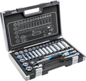 This 36-piece 3/8in drive socket set is a practical choice for home DIY and workshop maintenance, giving you a broad selection of sockets and driver bits for common fastening tasks. The fine-tooth ratchet helps you work confidently in tighter spaces, while the organised case keeps everything together and easy to find.