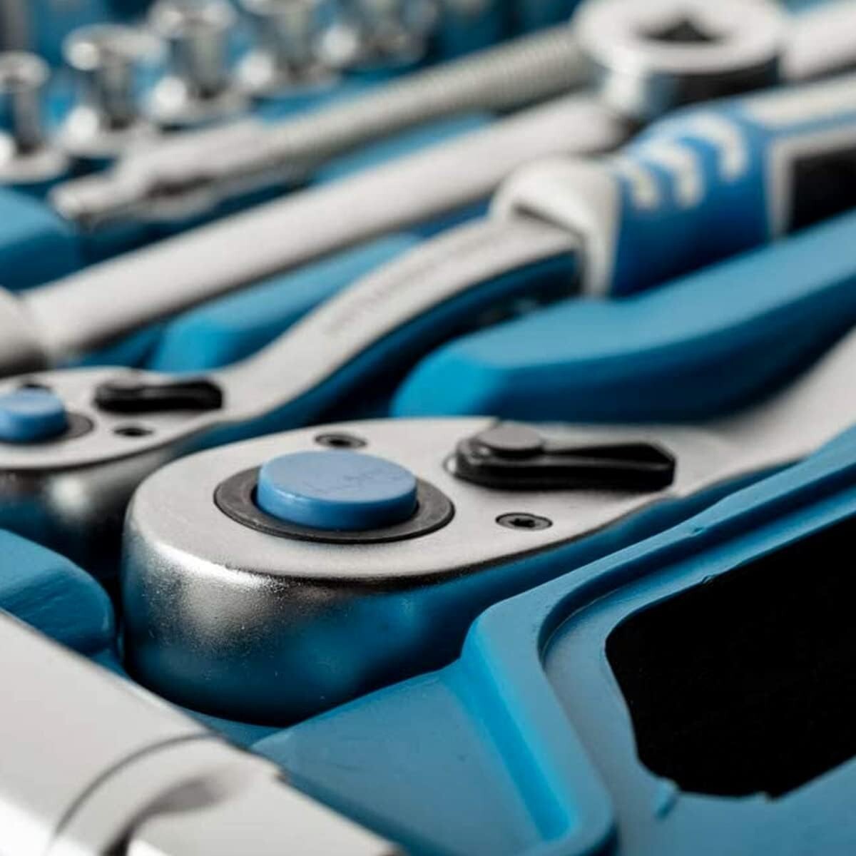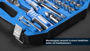 The sockets and accessories are made from durable chrome vanadium (CrV) alloy steel, while the ratchet mechanisms use chrome molybdenum (CrMo) alloy steel for strength in heavy-duty use. The ratchets feature a 72-tooth mechanism for efficient work in tighter spaces, and the set comes organised in a protective carry case for fast selection and tidy storage.
