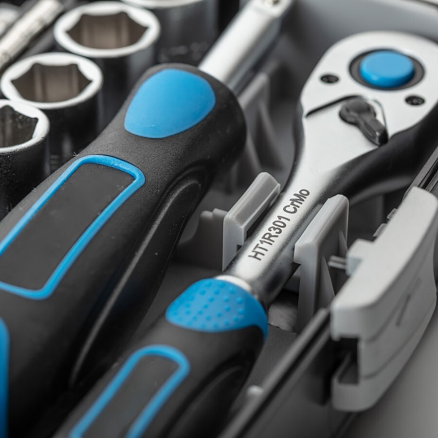 The set comes organised in a reinforced plastic case with sturdy metal hinges, keeping everything secure and easy to find. It’s a handy choice for DIY, maintenance tasks, and general mechanical work when you need a compact kit that’s easy to carry.