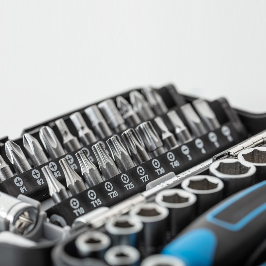 The sockets and key accessories are made from chromium-vanadium (CrV) alloy steel for strength and durability, while the bits are made from tough S2 alloy steel to help resist wear during regular use. A fine-tooth ratchet mechanism delivers smoother control and smaller movement between clicks, which is especially helpful when space is limited.
