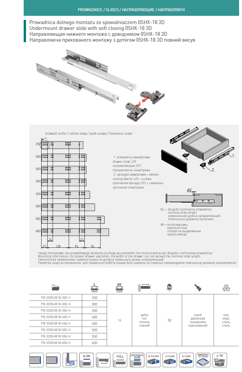 Made from durable steel with a protective zinc/galvanised-style coating, these runners are built for regular use and long-lasting performance. The slip-on design with clutch-style connection supports straightforward fitting, and the runners offer 3D adjustment so you can fine-tune the drawer position after installation.