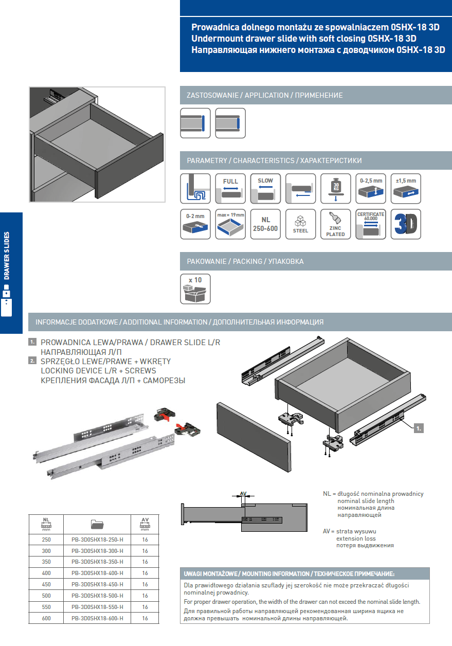 | Drawer Side Thickness Compatibility | 16–19 mm |
