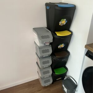 Choose from a set of 3 or a set of 4 bins, depending on how many waste types you want to separate. It’s a practical solution for paper and plastics, food waste caddies in larger systems, or general household sorting.