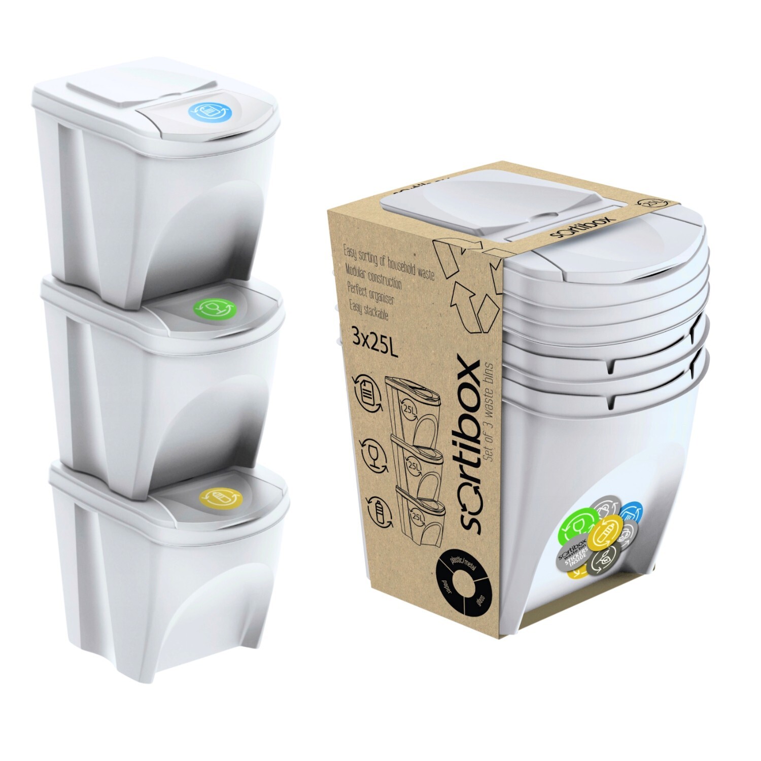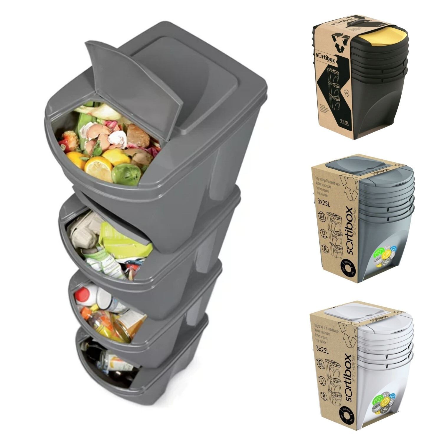 Keep recycling tidy with these stackable 25L bins, ideal for organising waste in small spaces. Choose a single bin or a 3 or 4 bin set, with lids and carry handles for easy daily use.