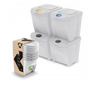 Each bin features a lidded top and an easy-carry handle, so it’s straightforward to move when emptying. The stackable design lets you build a vertical system that fits into tighter spaces without sacrificing capacity.