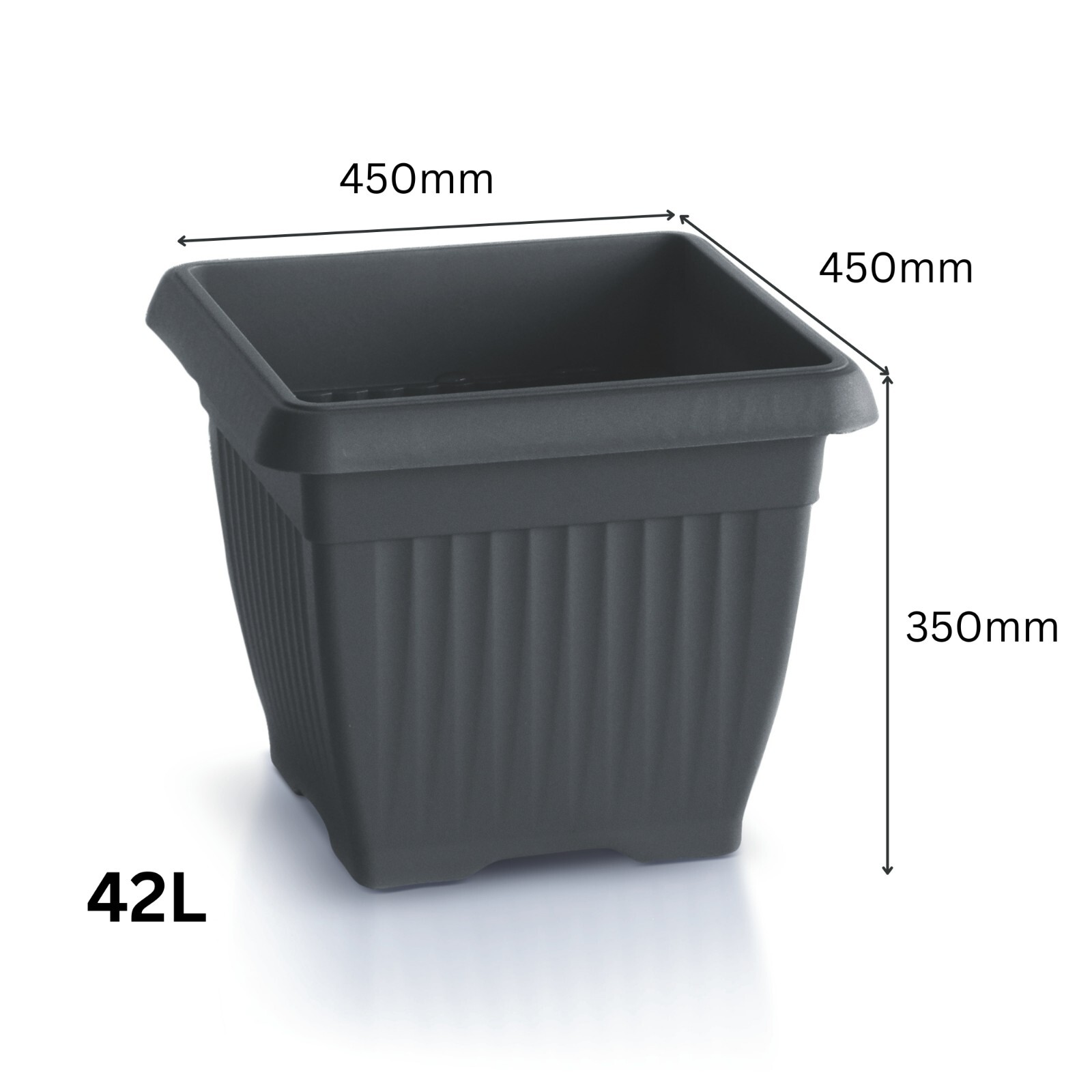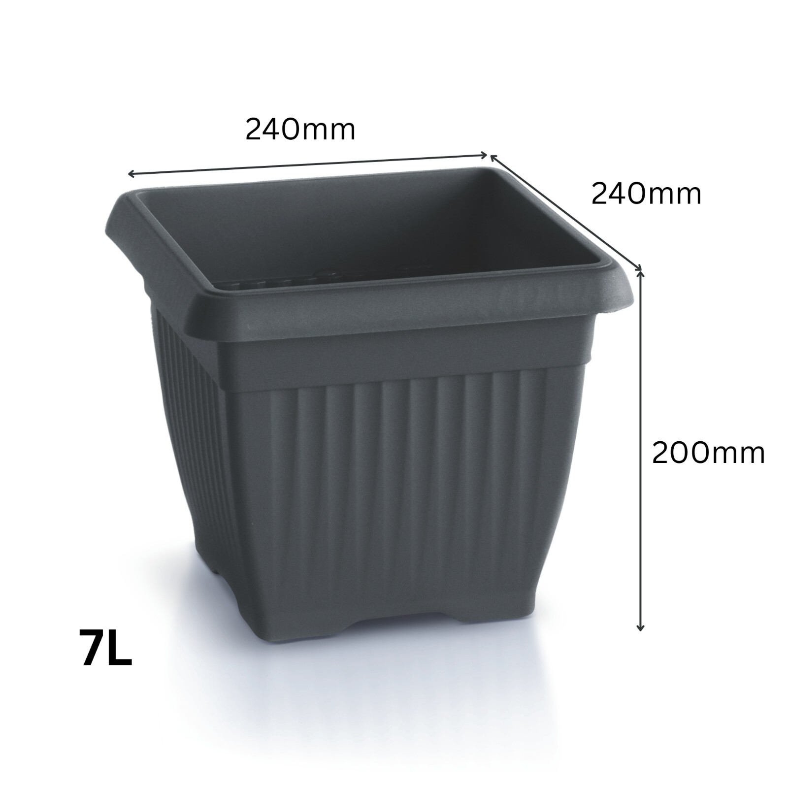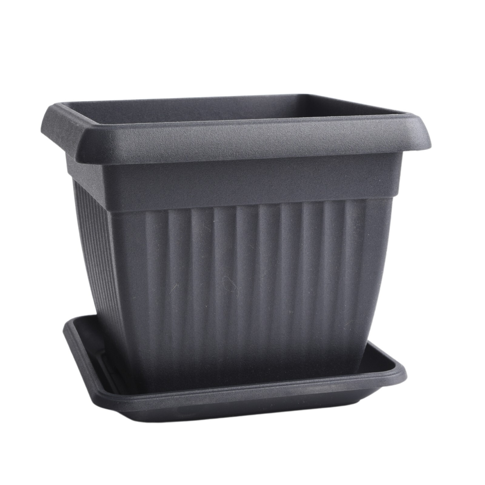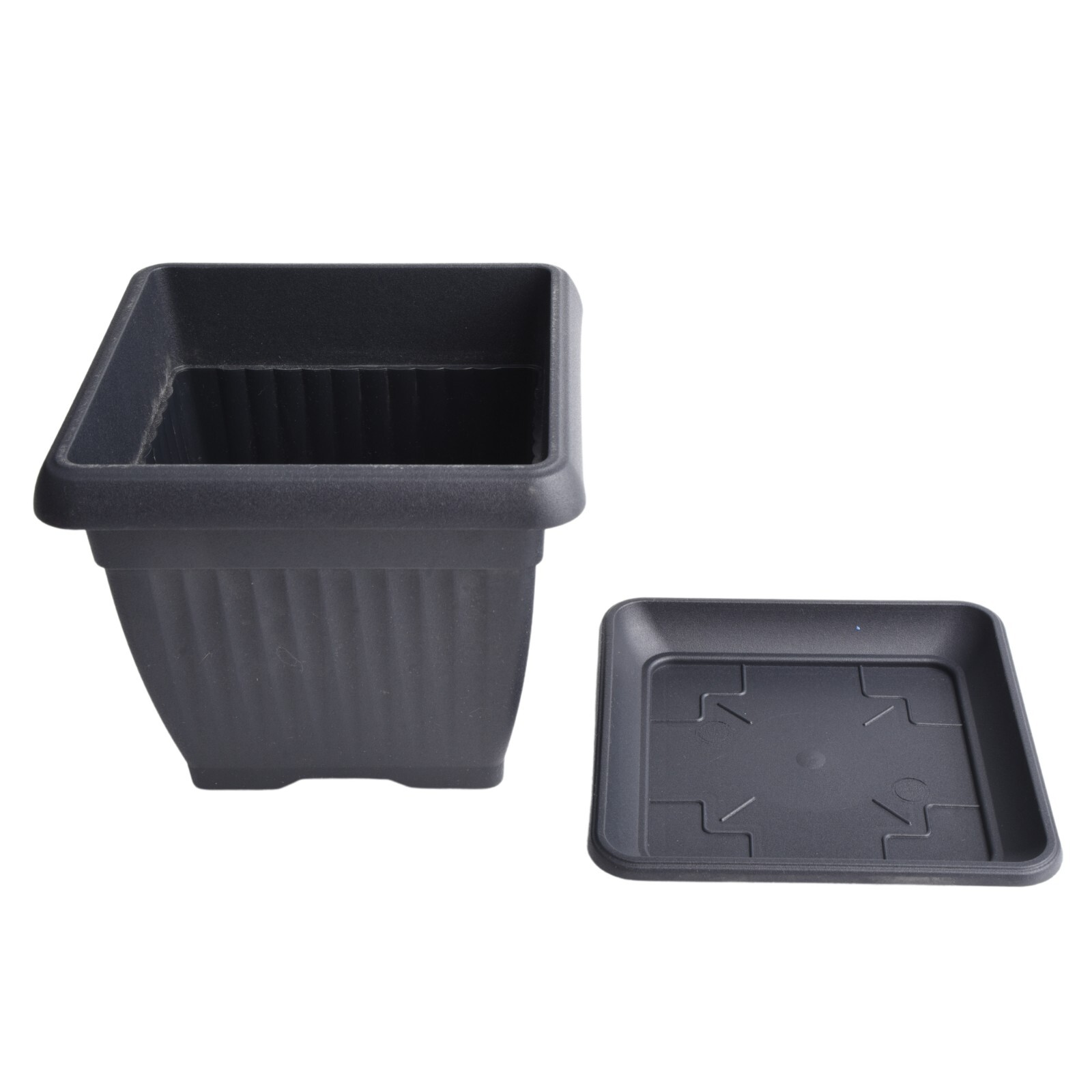 A classic square plant pot with a matching saucer for tidy watering indoors or outdoors. Made from durable polypropylene that’s weather-resistant and UV-stable, with a solid base so you can add drainage holes to suit your plants.