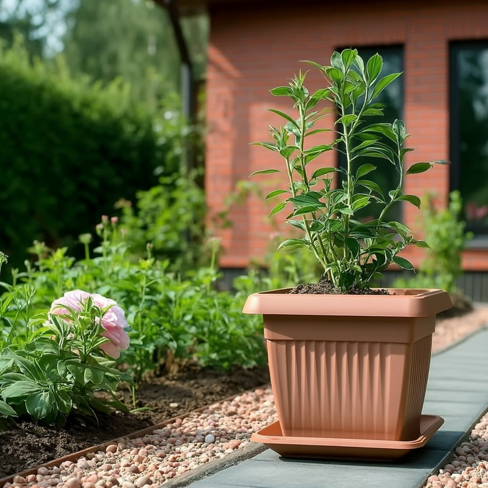 Give your plants a smart, tidy home with this classic square plant pot and matching saucer. Designed for both indoor and outdoor spaces, it helps keep surfaces cleaner by catching excess water while offering a neat, modern look for windowsills, patios and balconies.