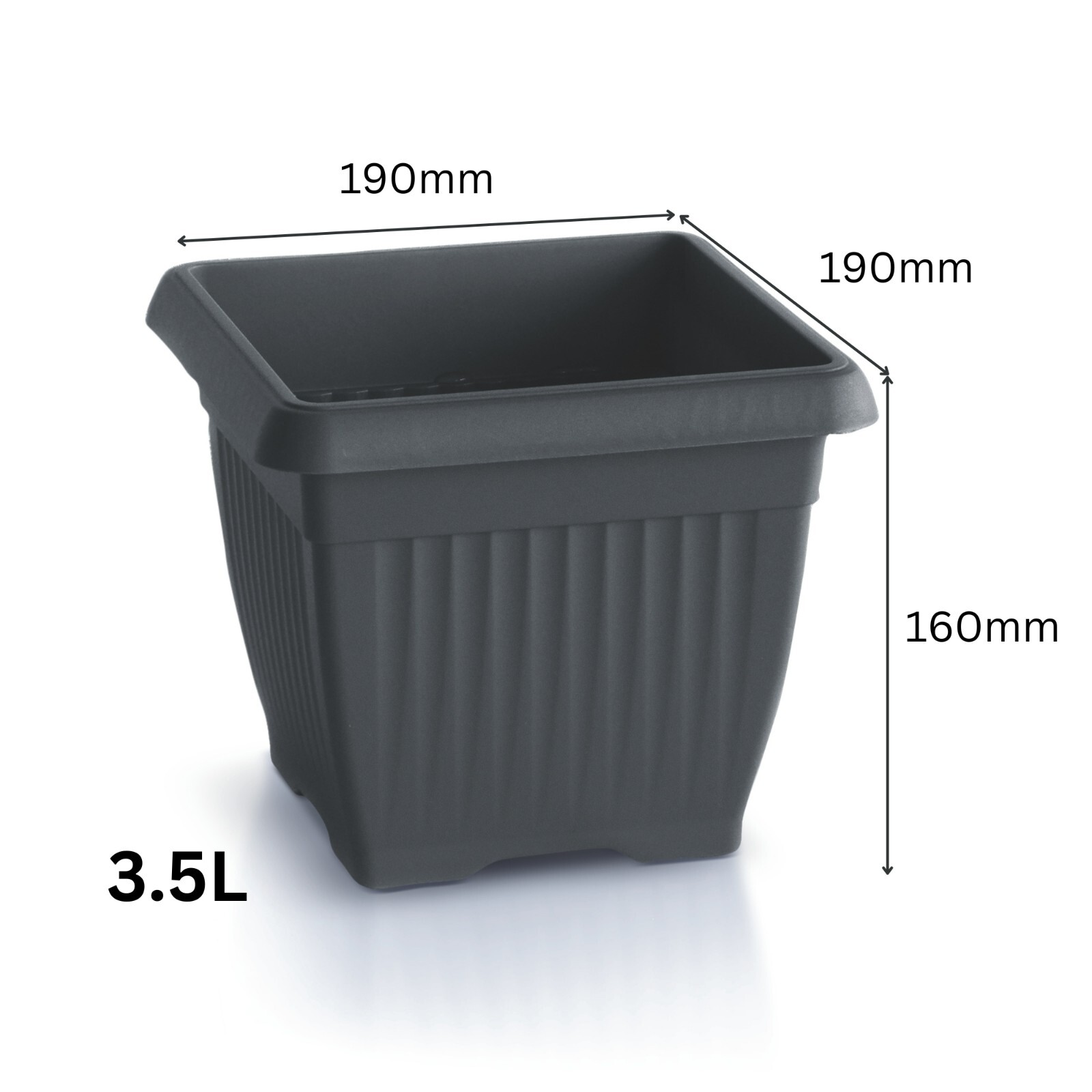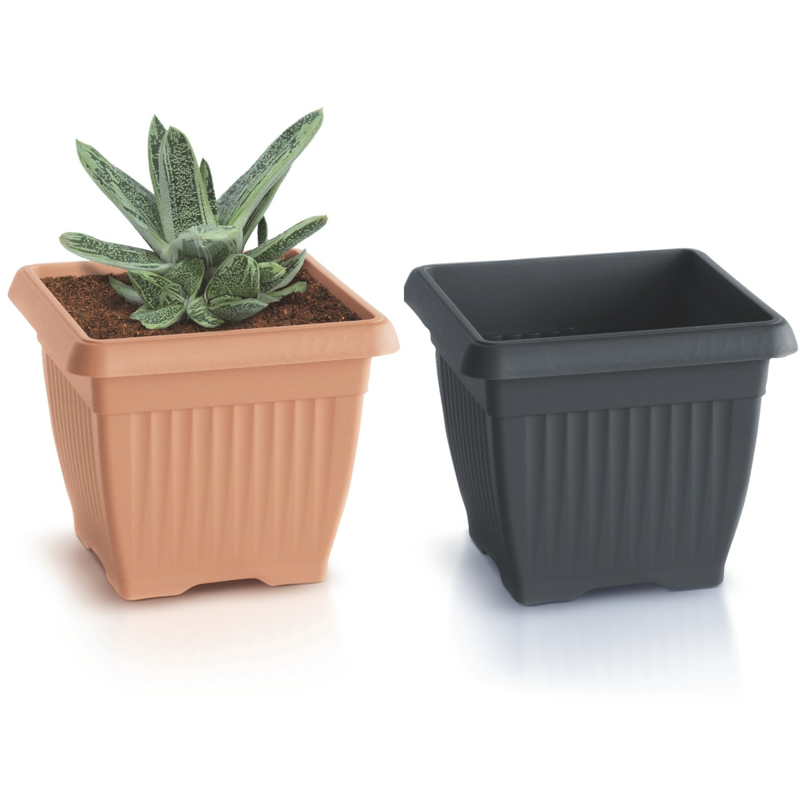 A classic square planter pot for indoor or outdoor use, made from durable polypropylene that stands up to everyday weathering. The solid base lets you add drainage holes to suit your plants, making it ideal for patios, balconies and windowsills.