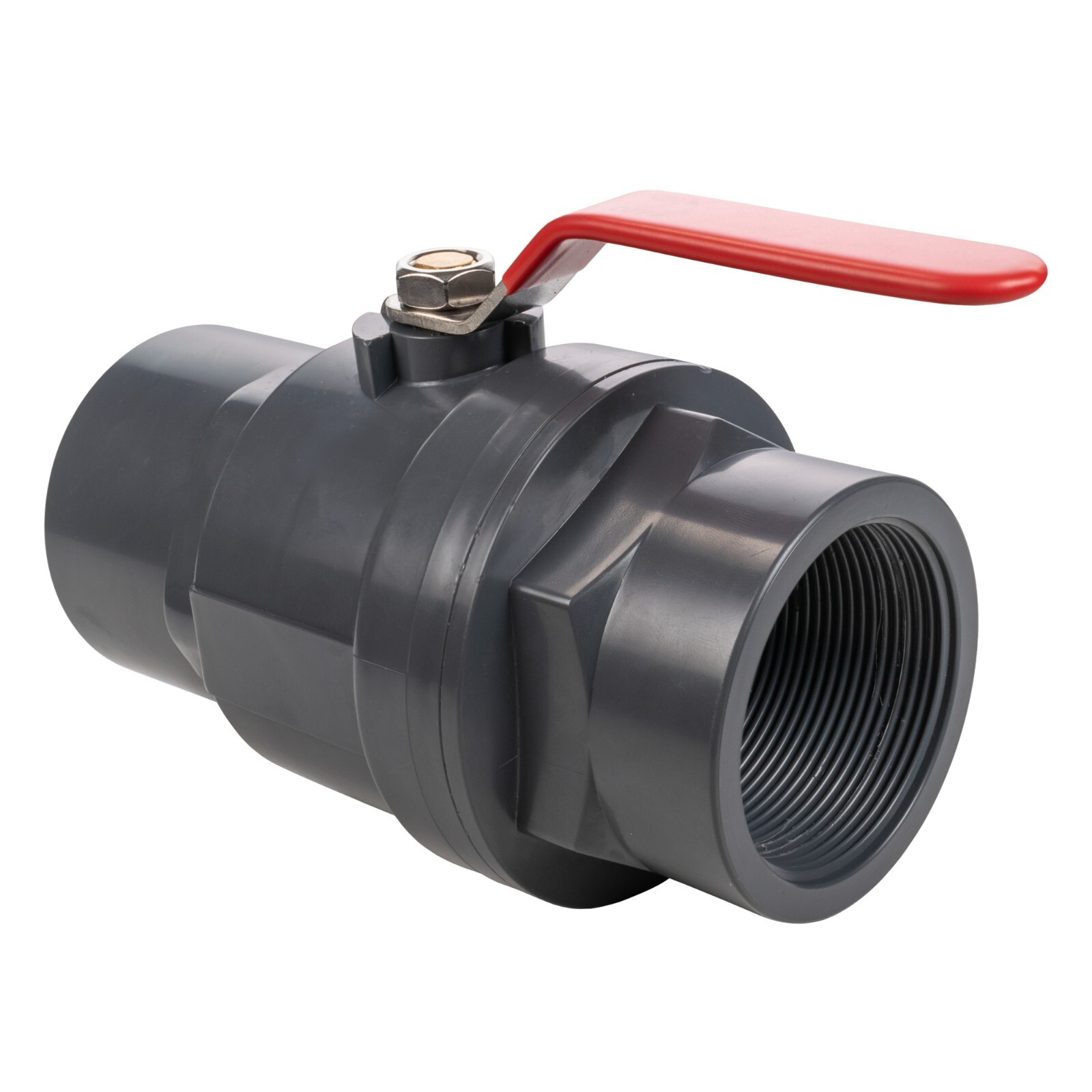 Polypropylene female-female BSP in-line ball valve for reliable on/off flow control. Features a stainless steel ball and lever for smooth operation and corrosion resistance across water and compatible chemical lines.