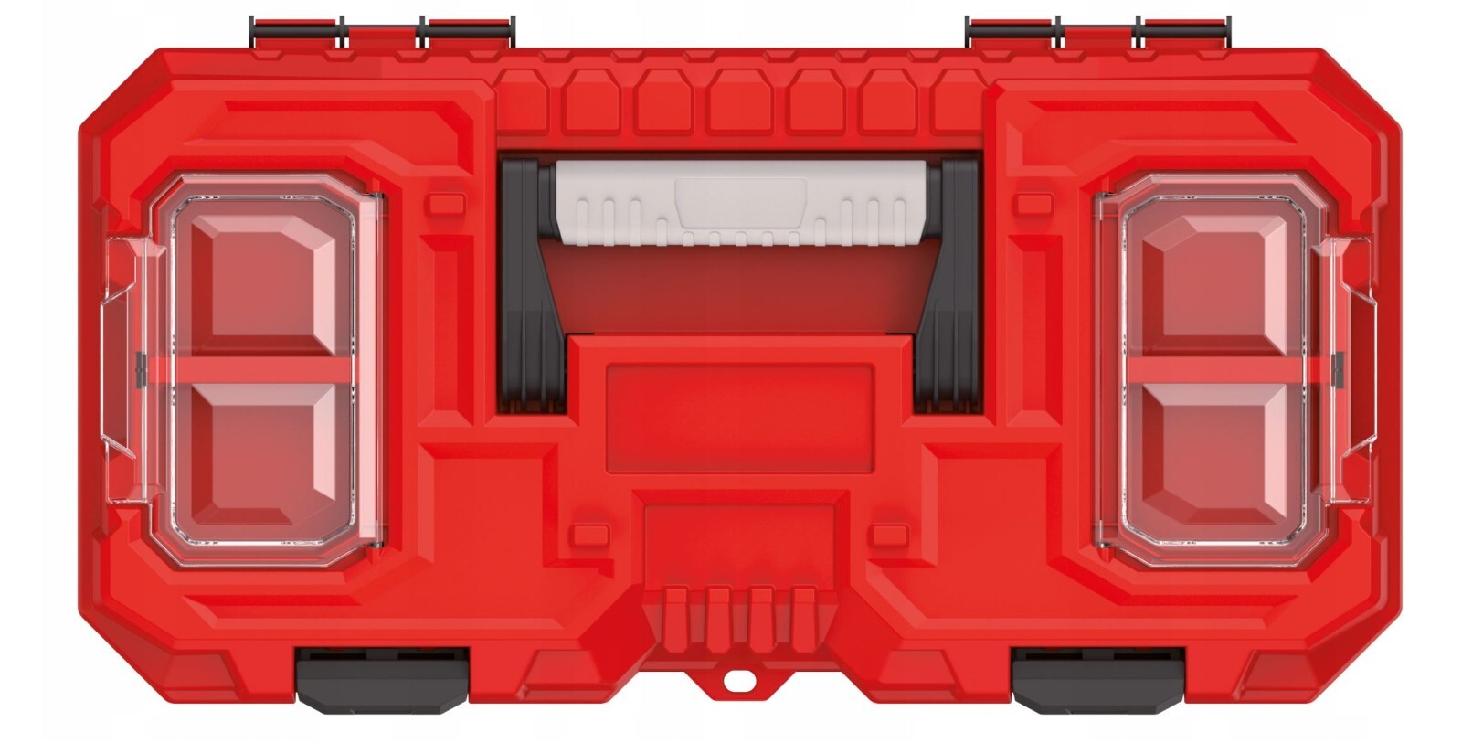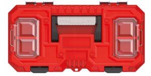 Two transparent organisers on the lid are handy for screws, wall plugs, connectors and other small accessories, helping you stay organised between jobs. The box can also be secured with a padlock for peace of mind when stored or transported (padlock not included).