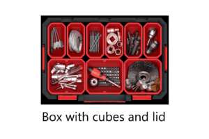| Model | Box with cubes and lid, Box with dividers and lid, Platform on wheels, Storage basket large + dividers, Storage basket & organiser set, Storage basket small, Storage basket small + dividers, Storage basket large, Tool box set, Van floor platform |