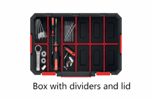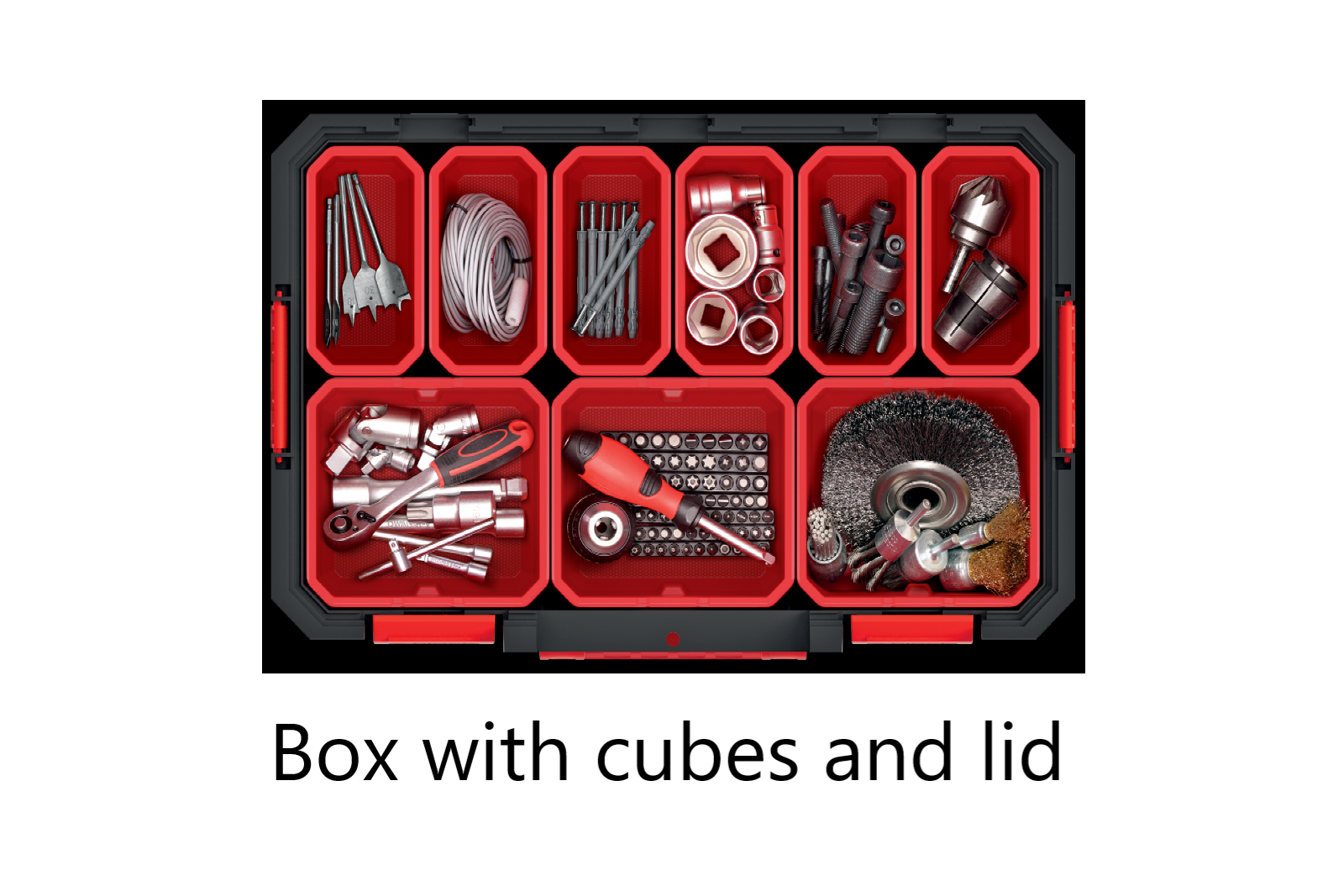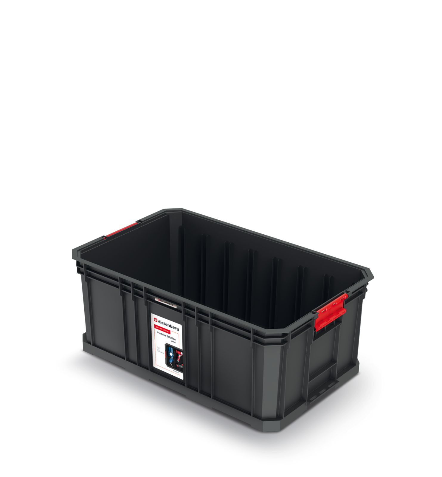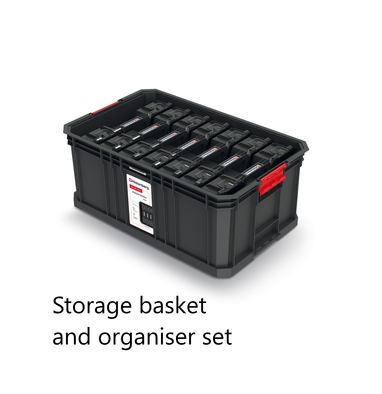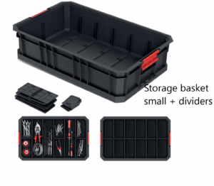 Choose the model that best fits your needs, from storage baskets with or without dividers to organiser options and transport platforms. The wheeled platform is ideal for moving stacked boxes around the workshop, while the van floor platform helps stabilise compatible boxes during travel.