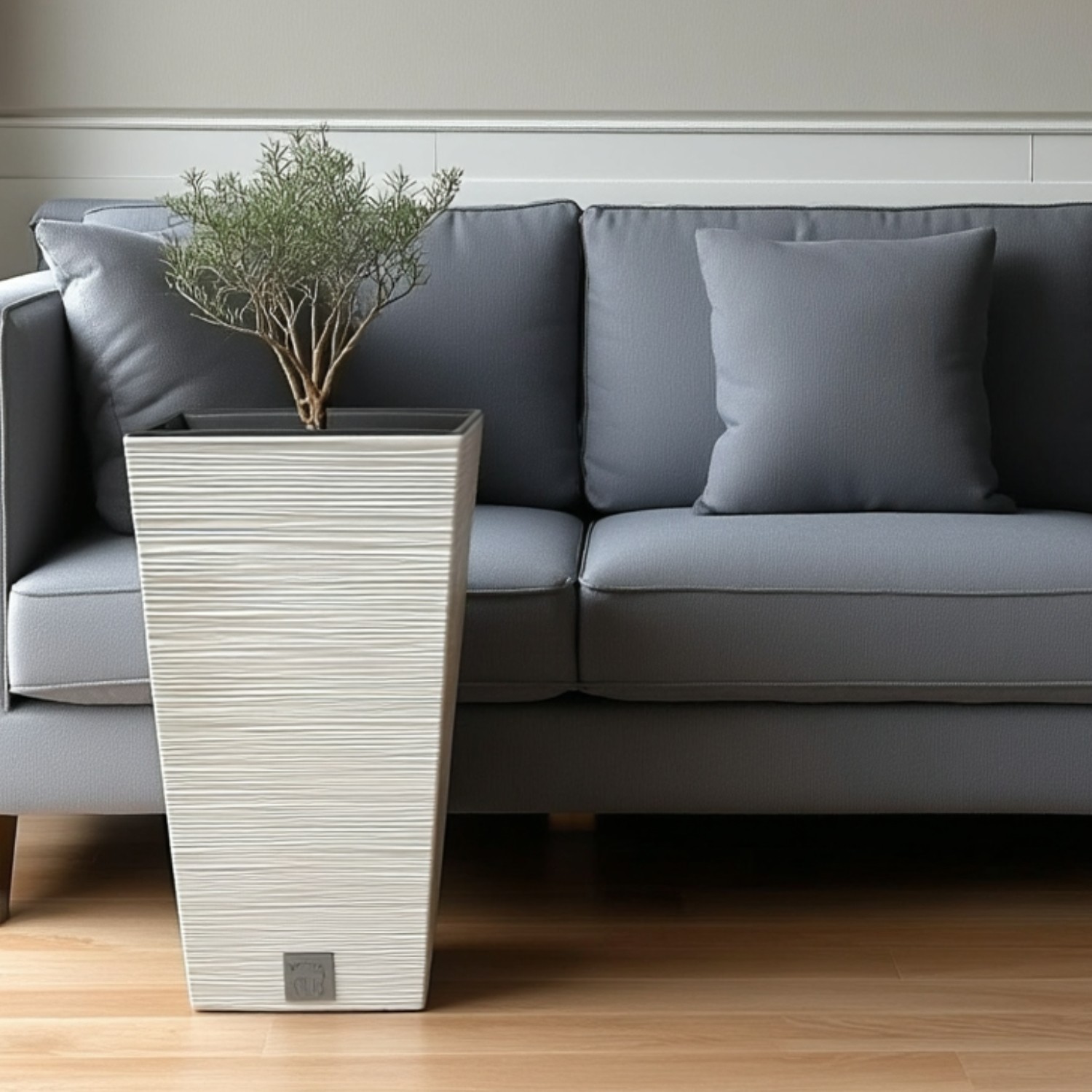 Bring a modern, structured look to your space with this tall square planter, designed to suit both indoor rooms and outdoor areas. Its textured finish adds style while keeping the overall look clean and contemporary.