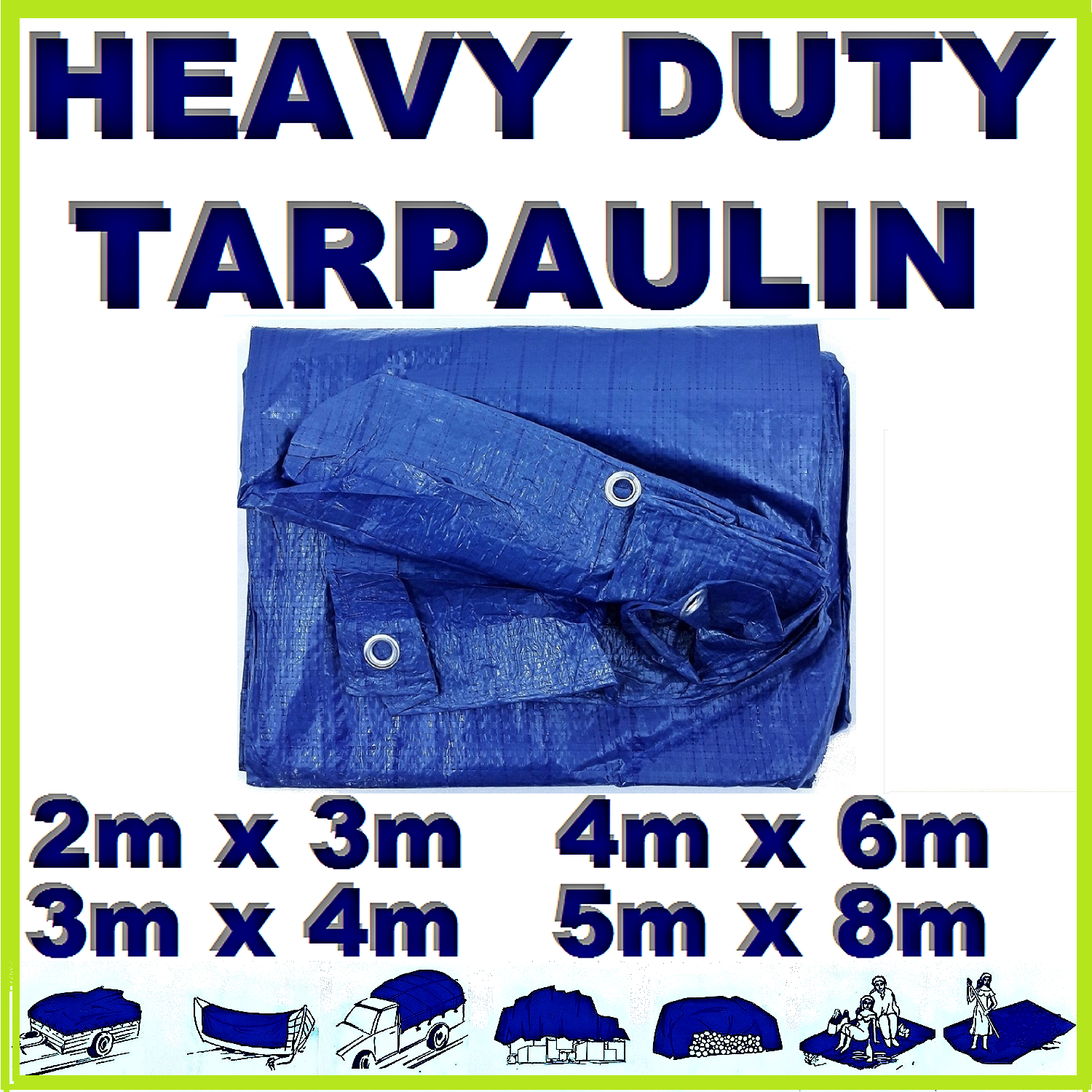 Ideal for use around the garden, farm, workshop or garage, it can be used to cover wood piles, building materials, machinery and outdoor seating. It’s also suitable for leisure and travel uses such as camping, festivals and boating, where a dependable cover or ground layer is required.
