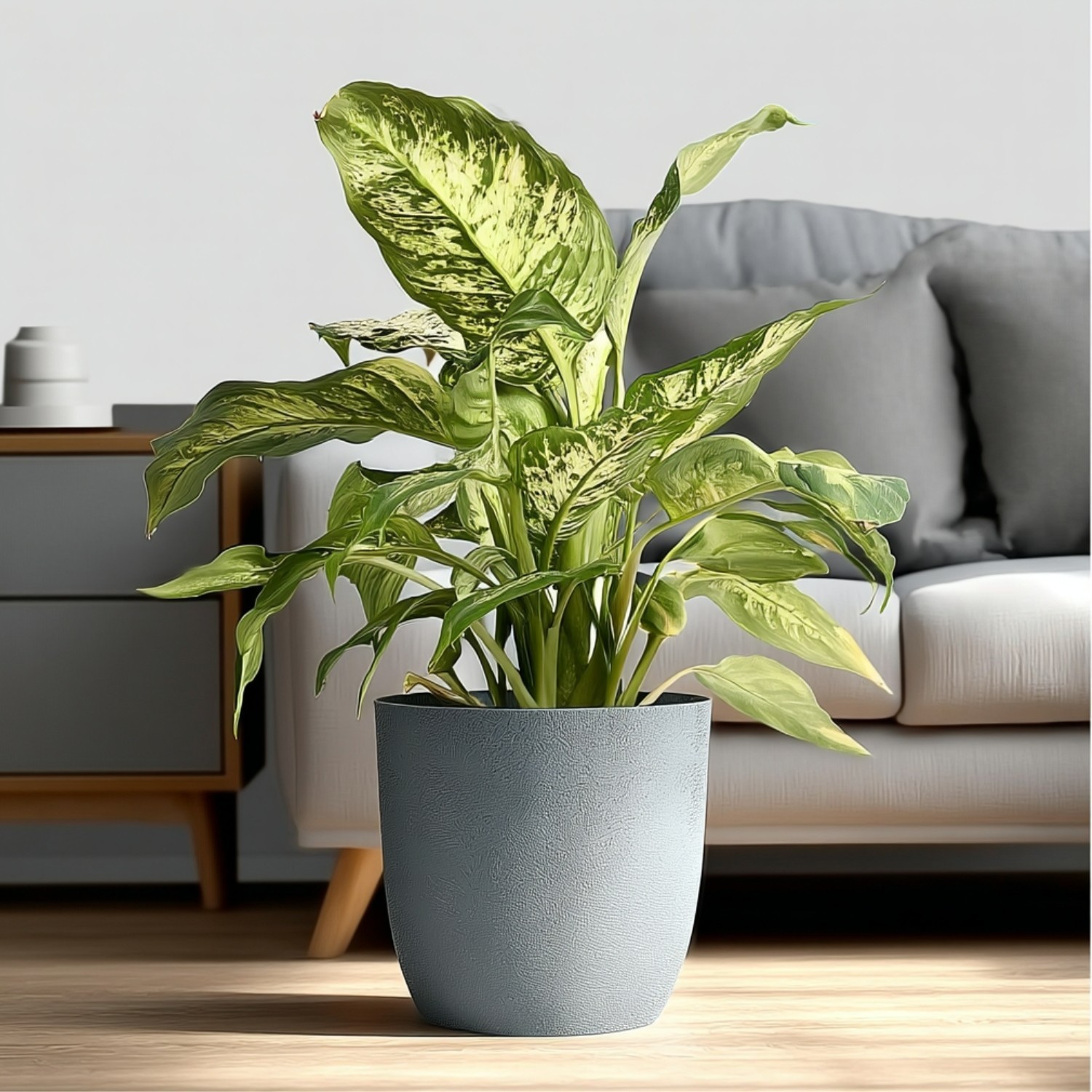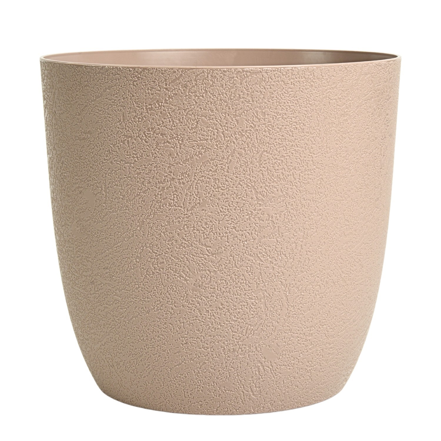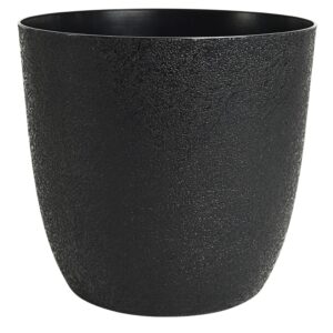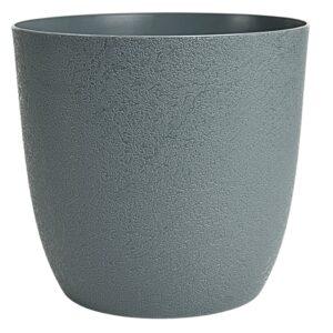A modern textured round planter made from recycled plastic, with a matte stone-effect finish that suits any room, patio or balcony. Lightweight yet sturdy, it’s weather-resistant and UV-stable for year-round indoor or outdoor use.