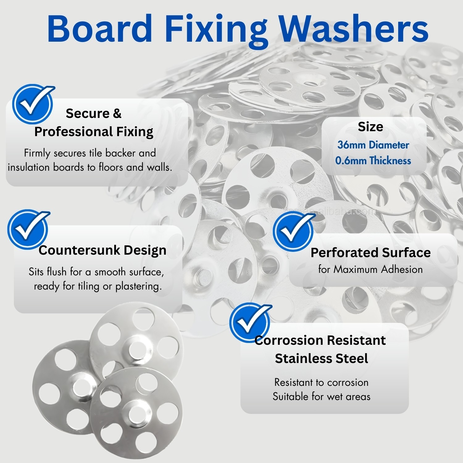 These fixing washers provide a reliable mechanical fixing method, helping to stabilise boards prior to tiling and ensuring a solid substrate.