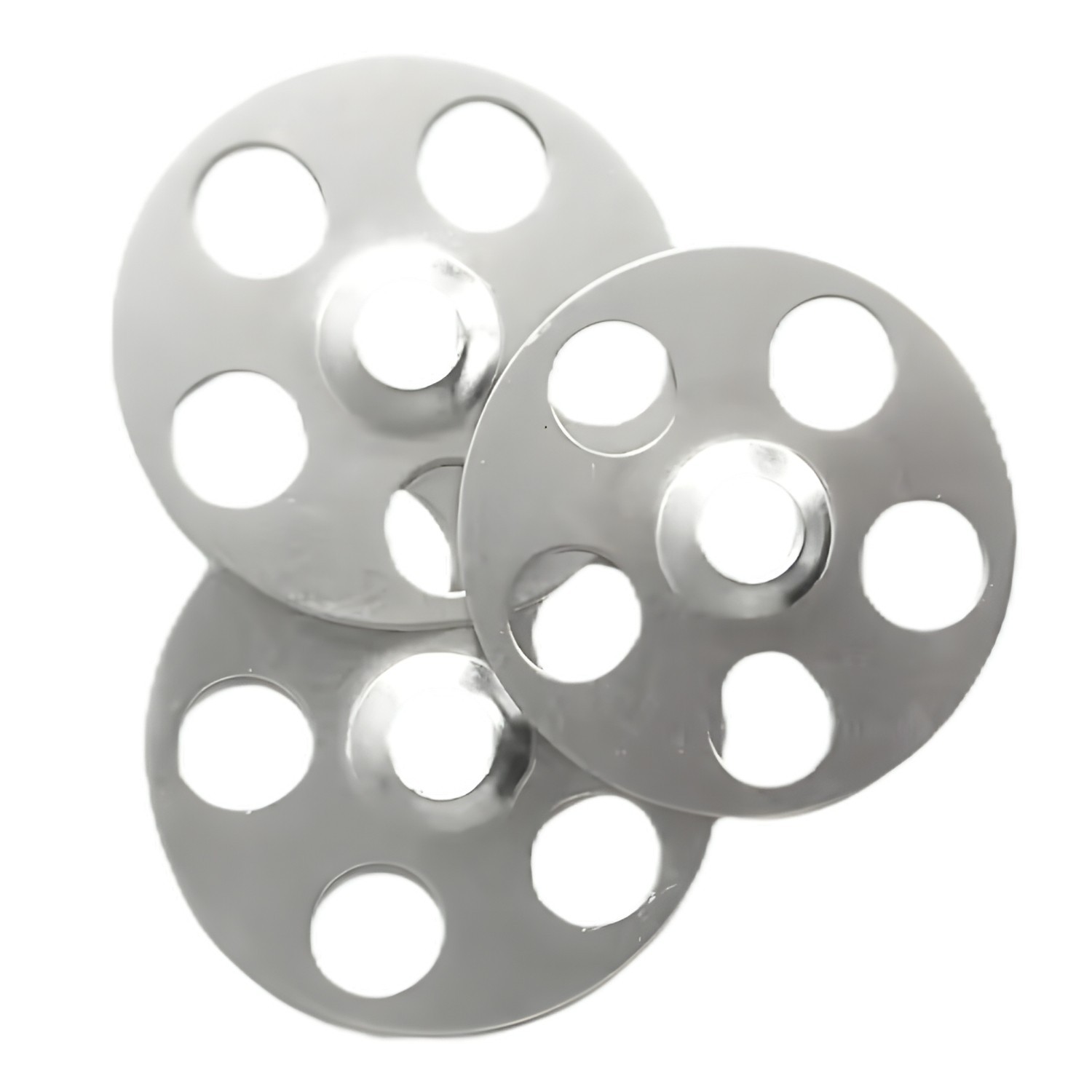 The perforated design allows tile adhesives and plasters to key through the washer, maintaining full surface adhesion and creating a continuous, stable tiling base.