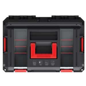 Both units use a durable, high-strength polymer body with strong metal hinges for dependable everyday use. Clear polycarbonate organiser lids make it easy to see contents at a glance, while removable trays and dividers let you customise the layout for hand tools, fixings and accessories. A sealing gasket helps protect your kit from dust and light moisture.