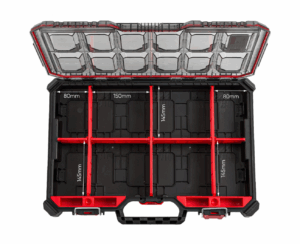 Made from durable polypropylene, each box and organiser is built for everyday workshop use. The modules connect securely, while the quick access system allows you to open organisers even when stacked. Removable dividers and internal trays help you customise the layout for small parts, consumables and larger tools.
